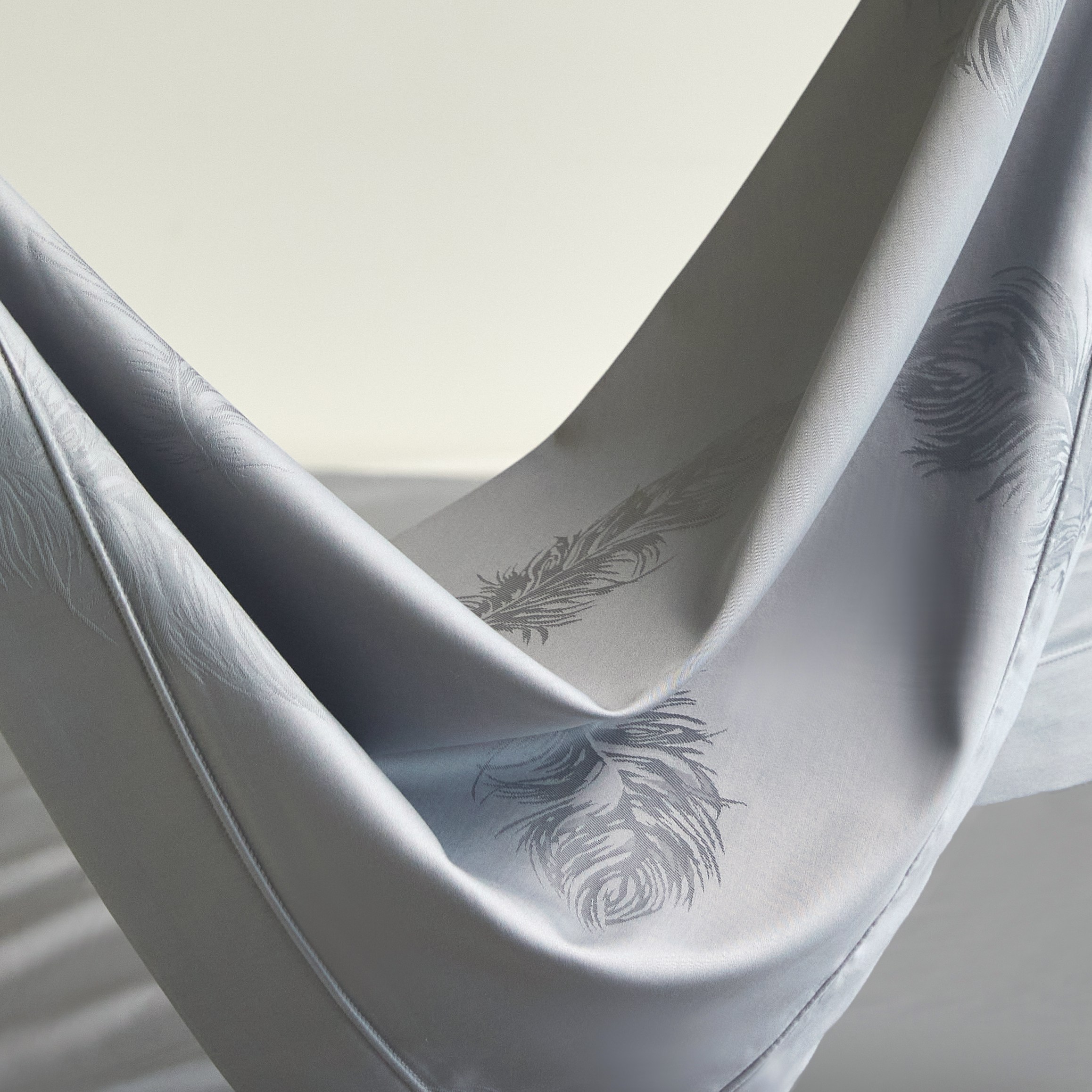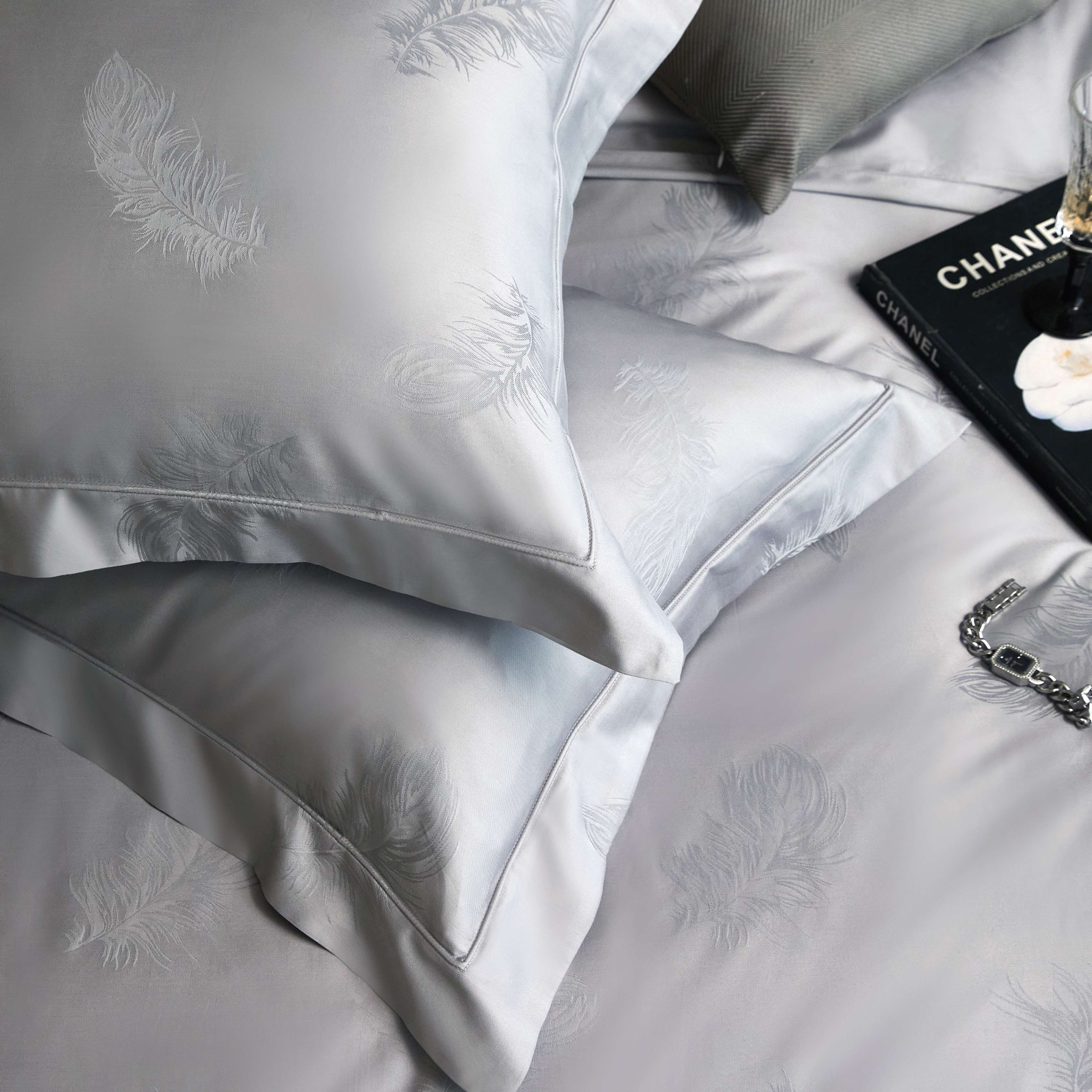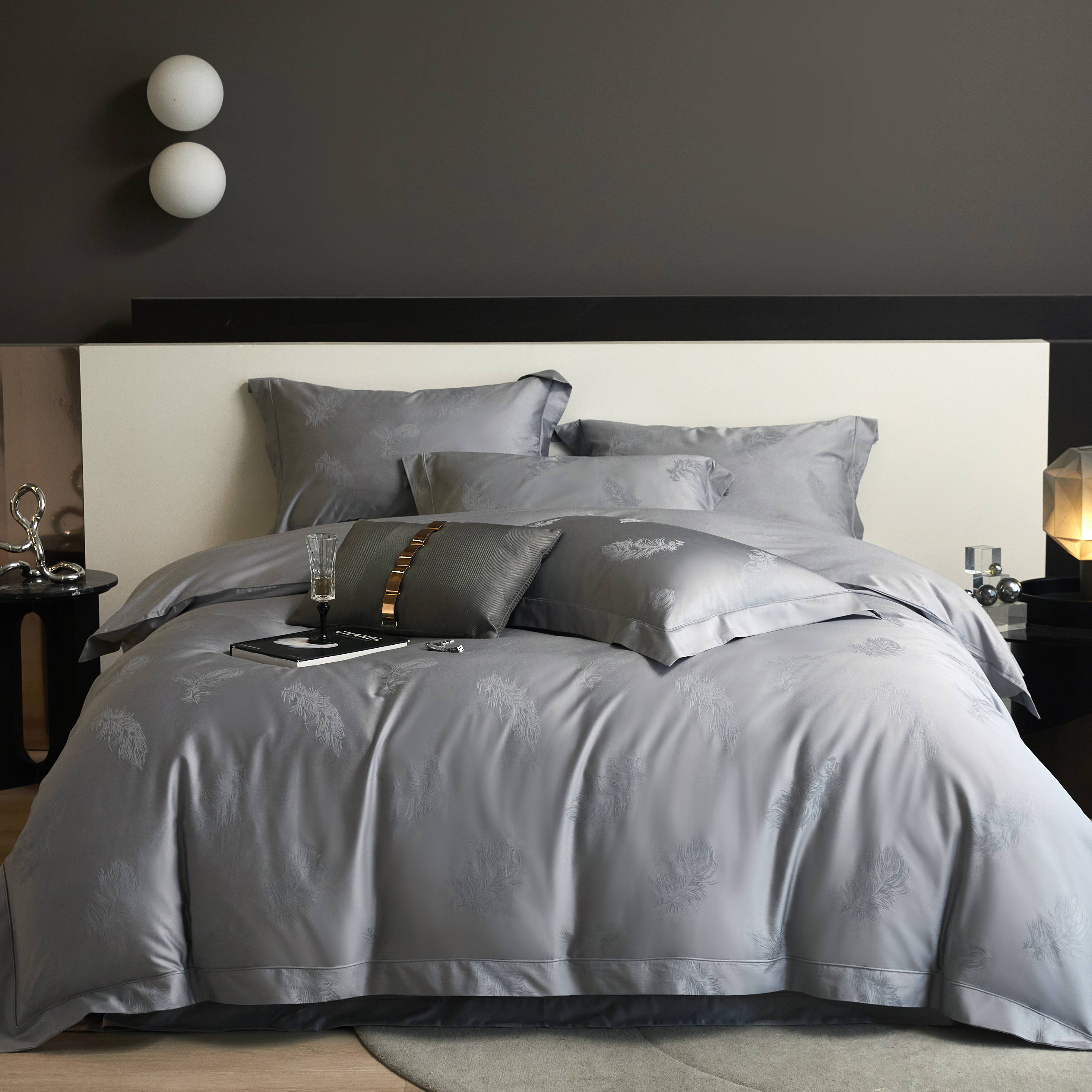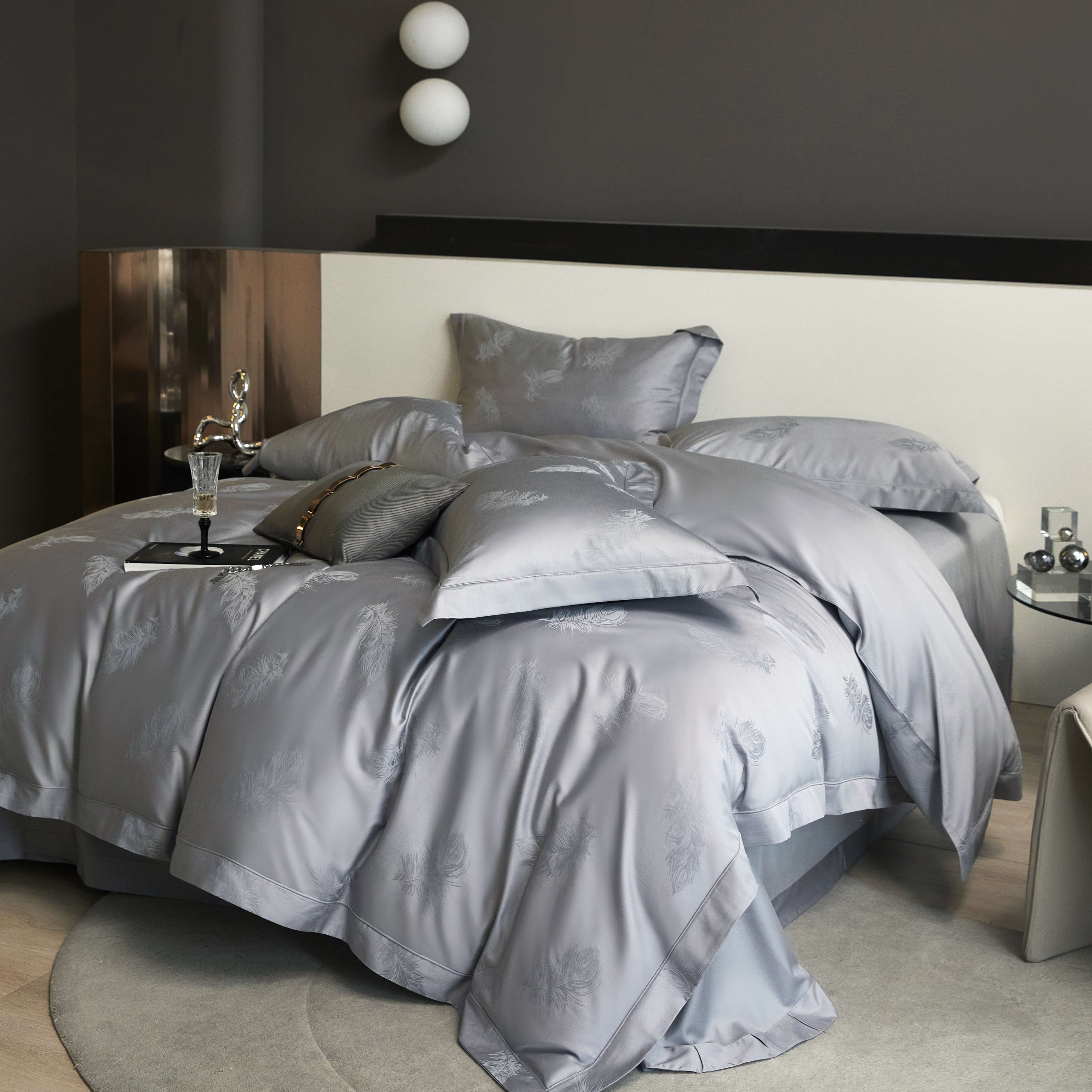 榻尚家居 2025春夏新款长绒棉全棉纯棉贡缎提花手工立体埋绳工艺四件套 飘羽(高级灰)