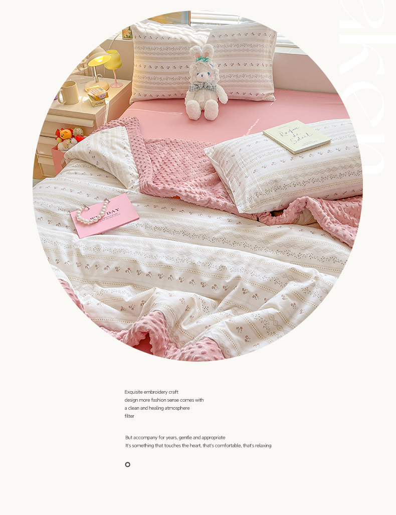(总)一加一 2025新款全棉色织简约风艾阳绒抗菌被芯,浅兰韵律,桃之夭天,悠然时光