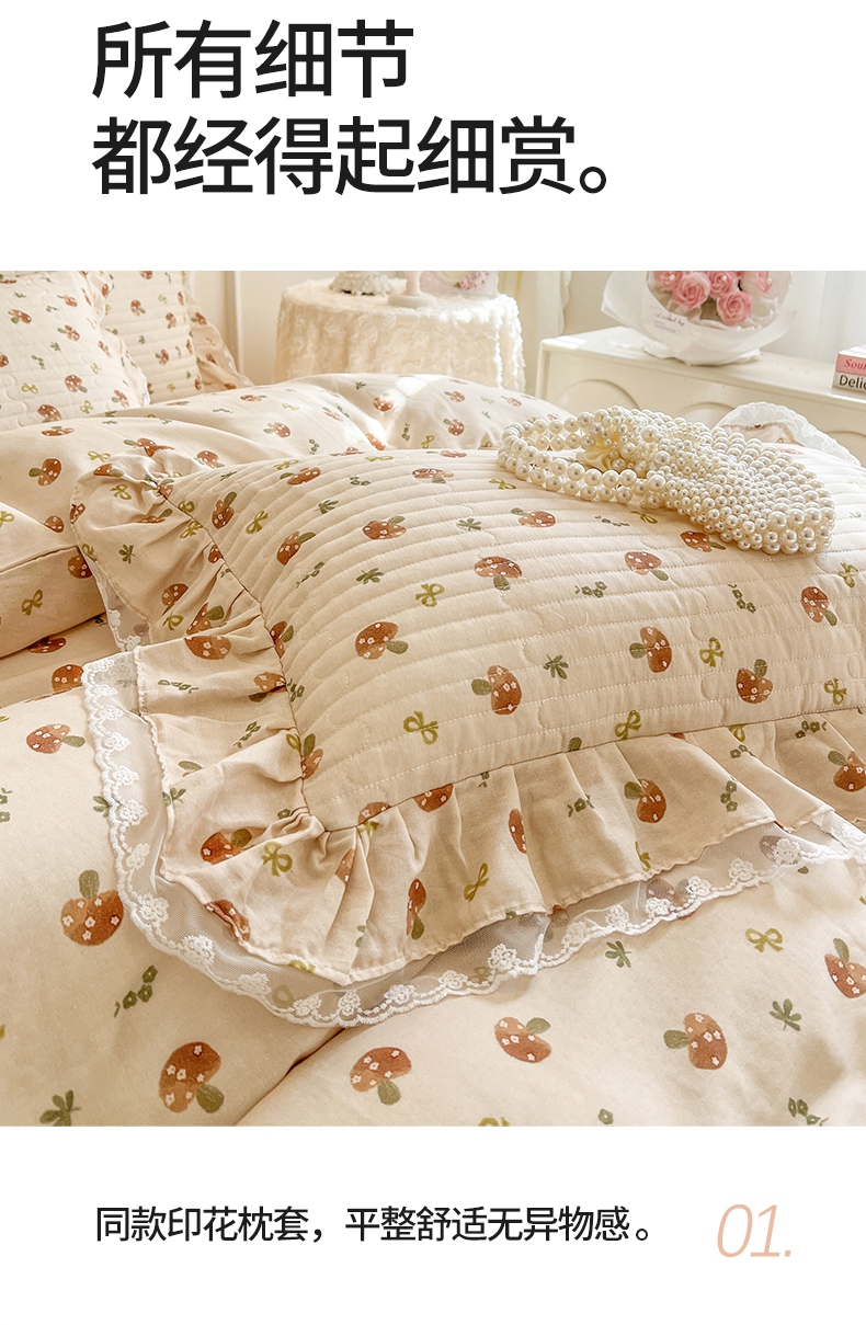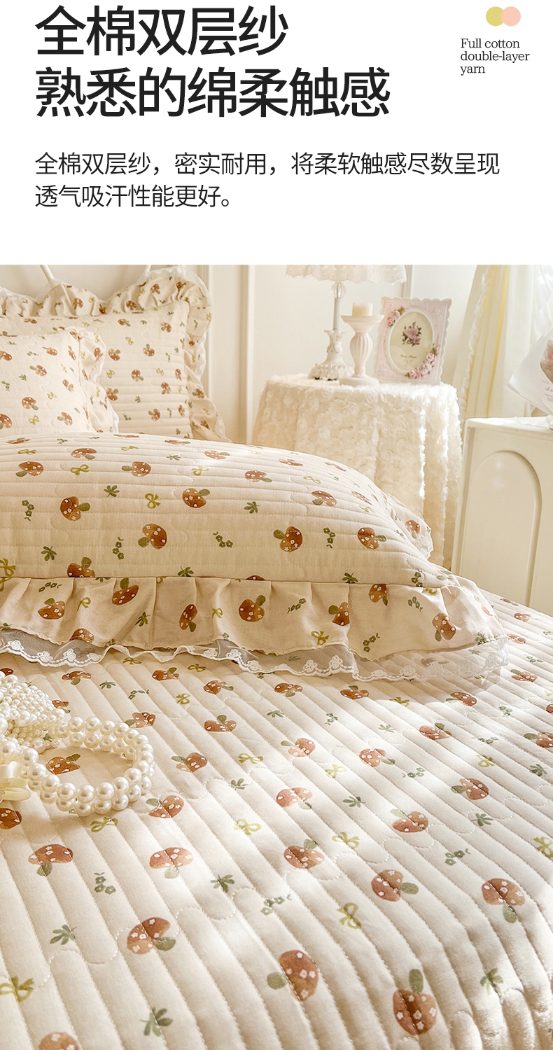 商品名称:麒豆豆 2025新款全棉印花双层纱床盖 蘑菇力