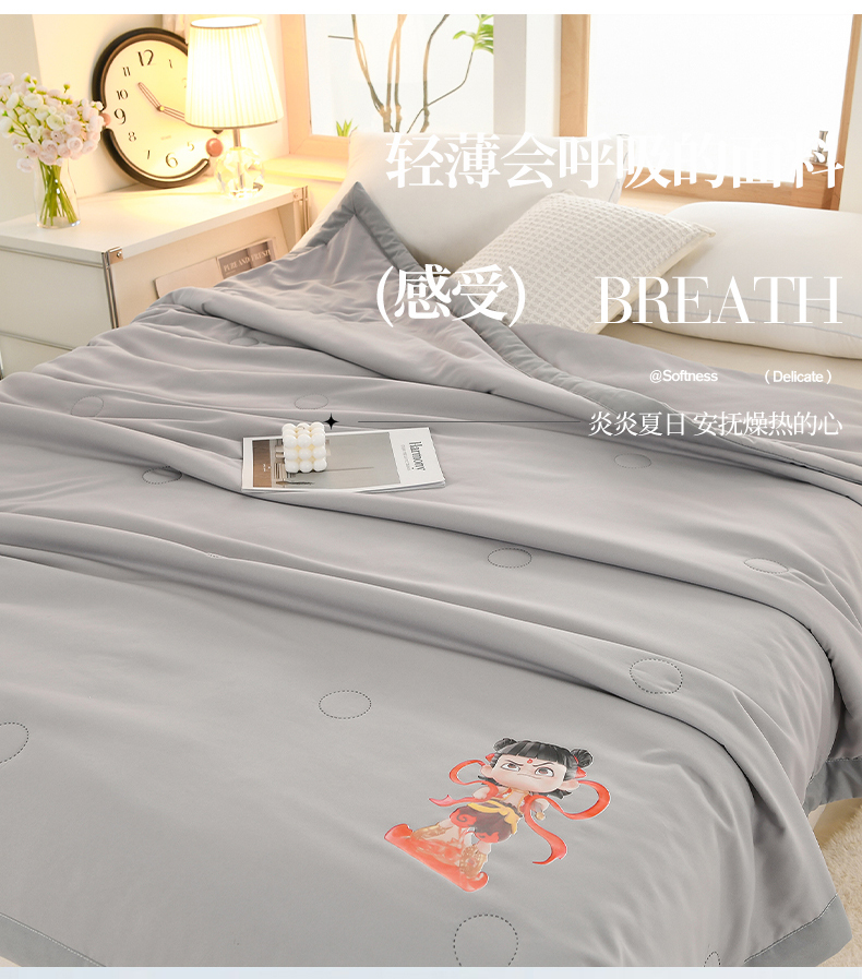 商品名称: 易展家居 2025年新款水洗棉哪吒夏被 哪吒-轻银灰