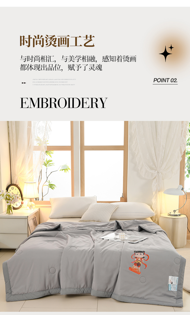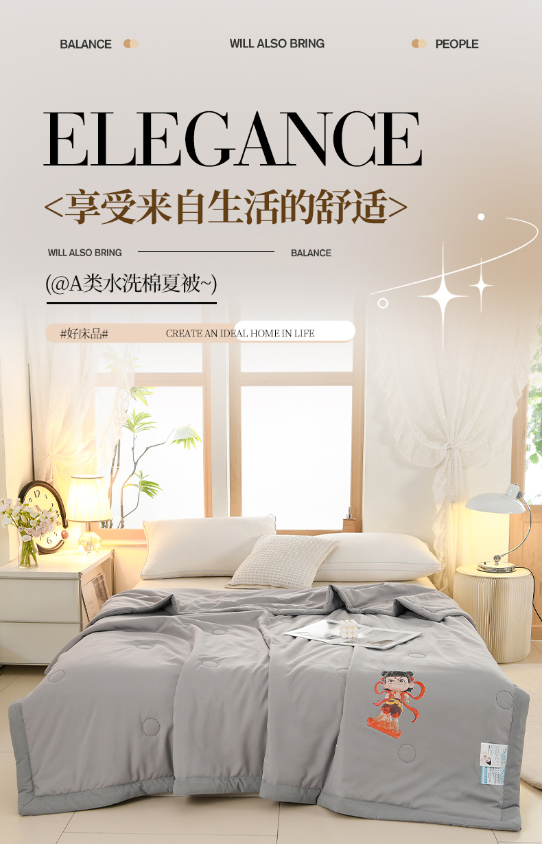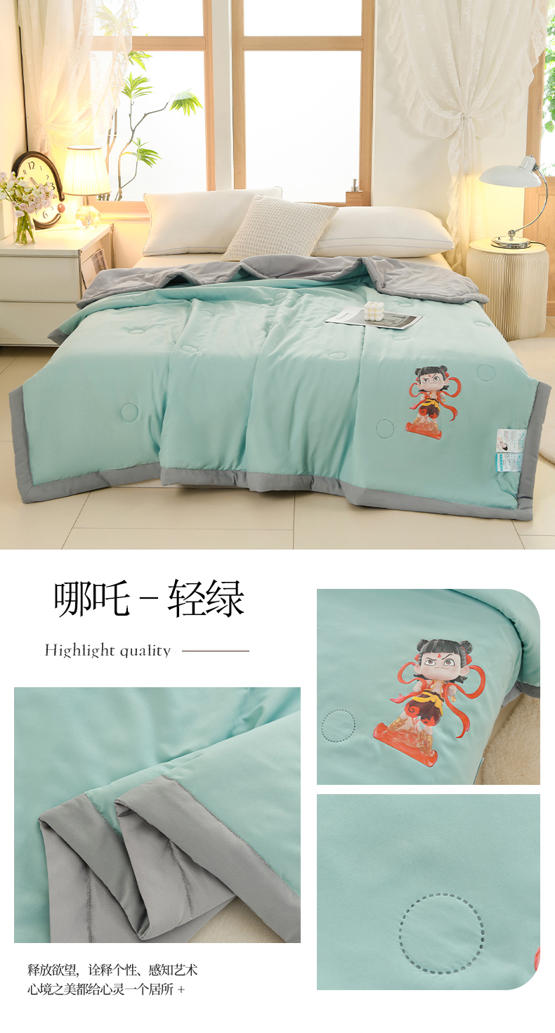 (总)易展家居 2025年新款水洗棉哪吒夏被,哪吒-奶昔白,哪吒-轻绿,哪吒-轻银粉,哪吒-轻银灰