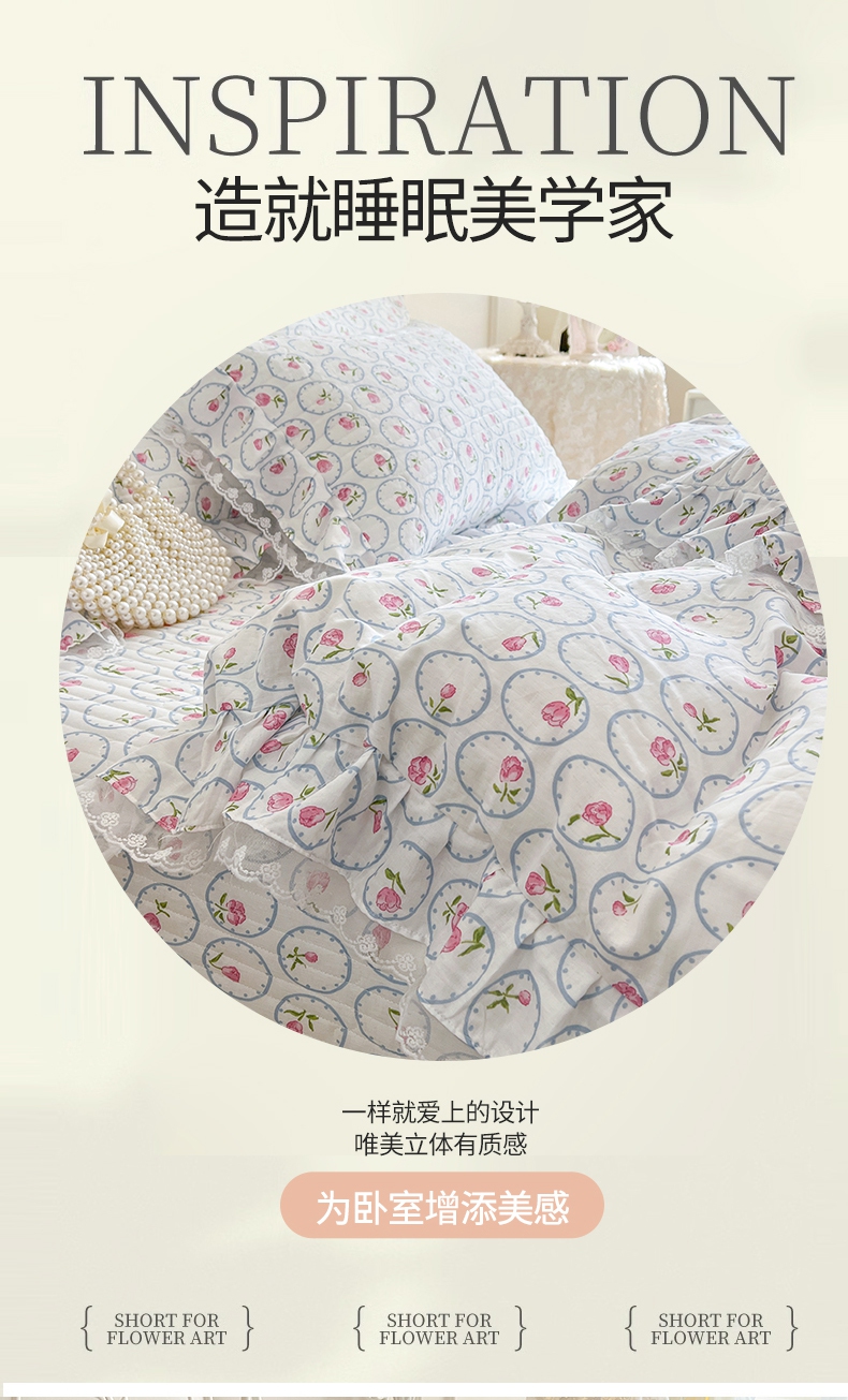 网红馆(ck家纺) 2025新款全棉印花双层纱床盖四件套 简爱