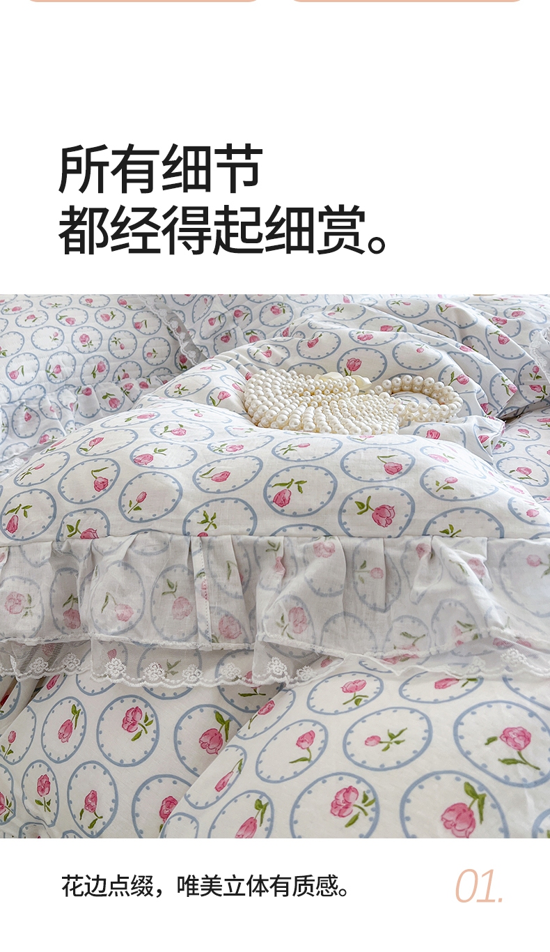 (总)网红馆(ck家纺) 2025新款全棉印花床盖四件套,春湔,花韵花香,玫瑰樱桃,陌上花开,青葱岁月
