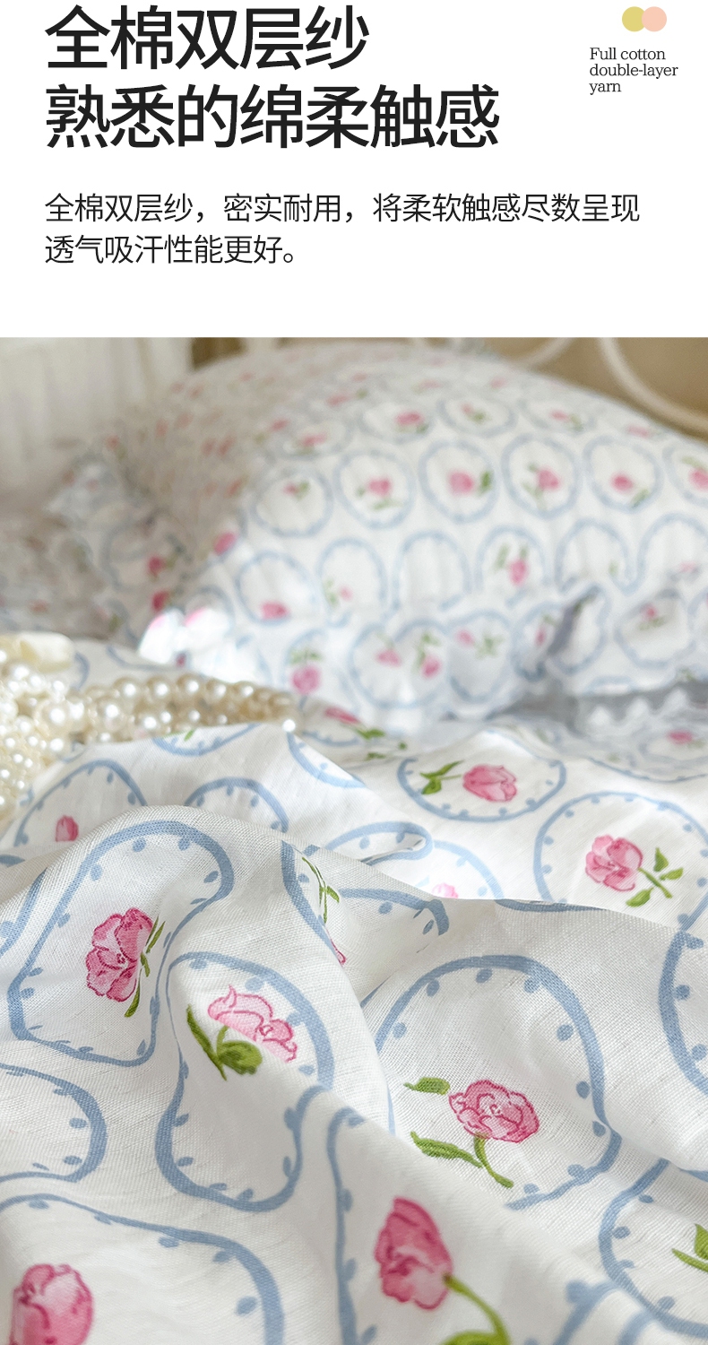 商品名称:网红馆(ck家纺) 2025新款全棉印花双层纱床盖四件套 简爱
