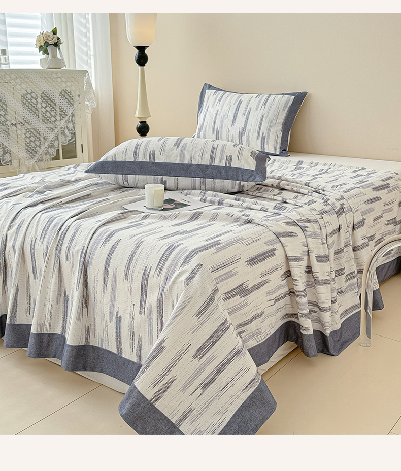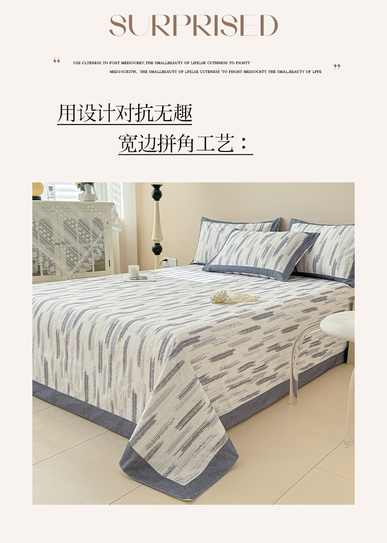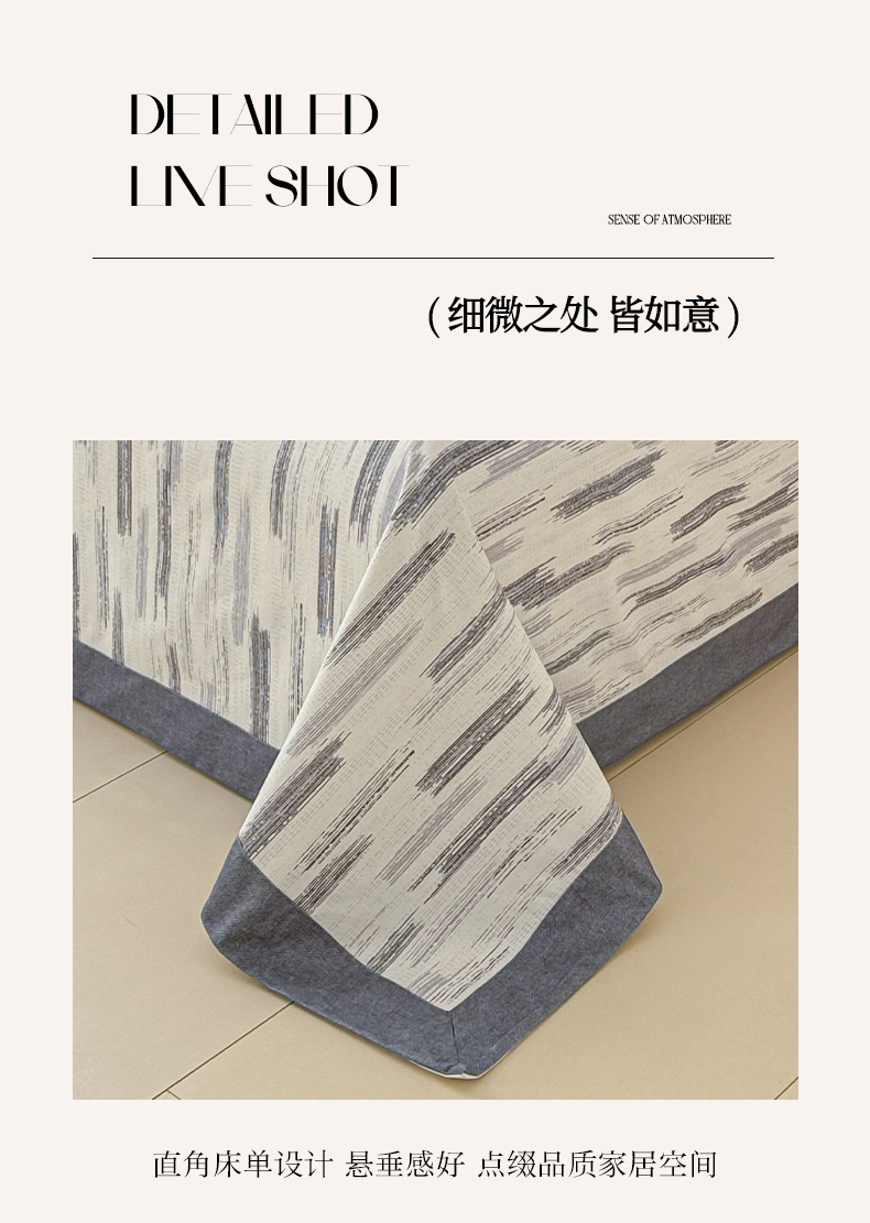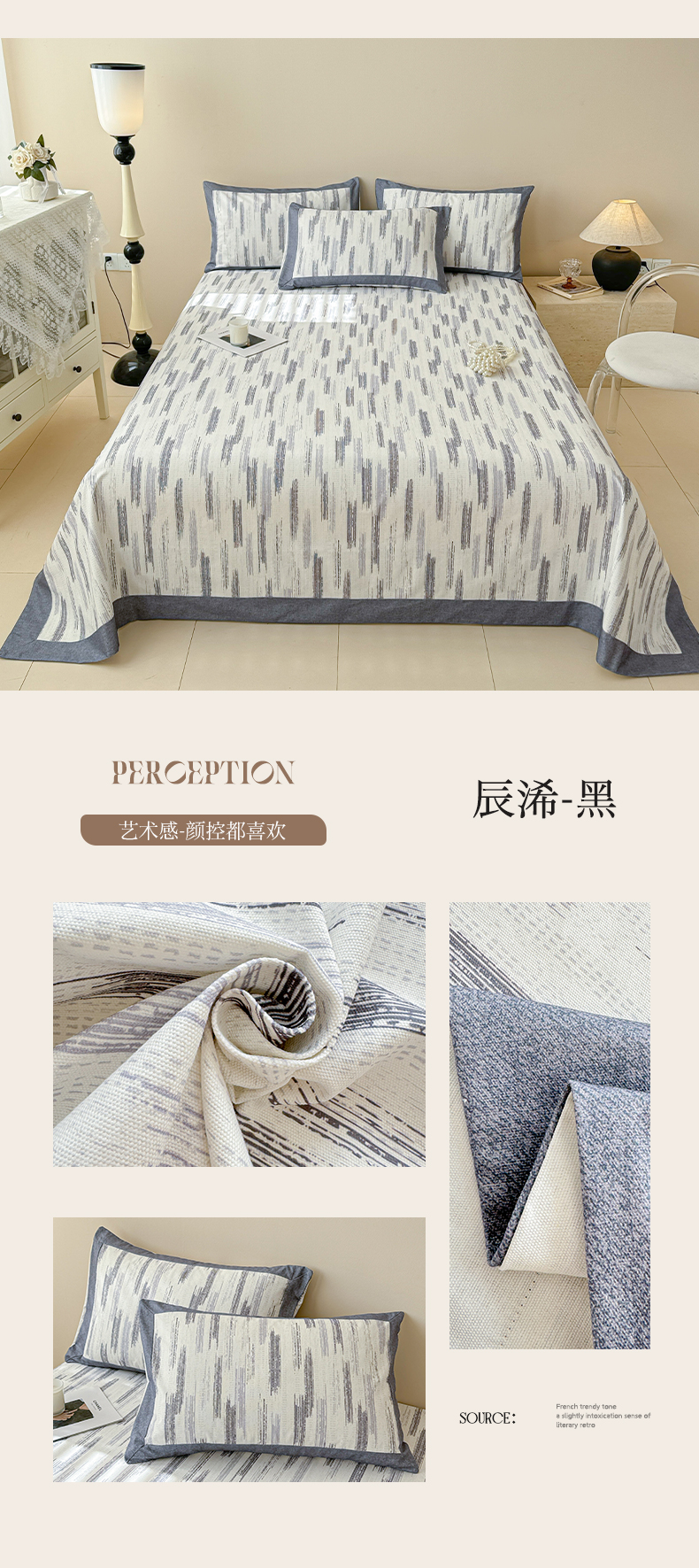 • 91家纺网 家纺一手货源 找家纺 蓝邻家纺 2025新款100%新疆原棉粗布小清新拼角工艺款系列单床单 辰浠-黑