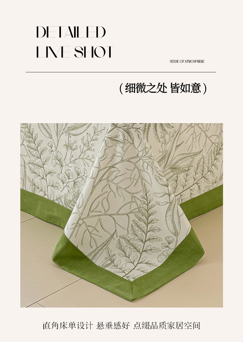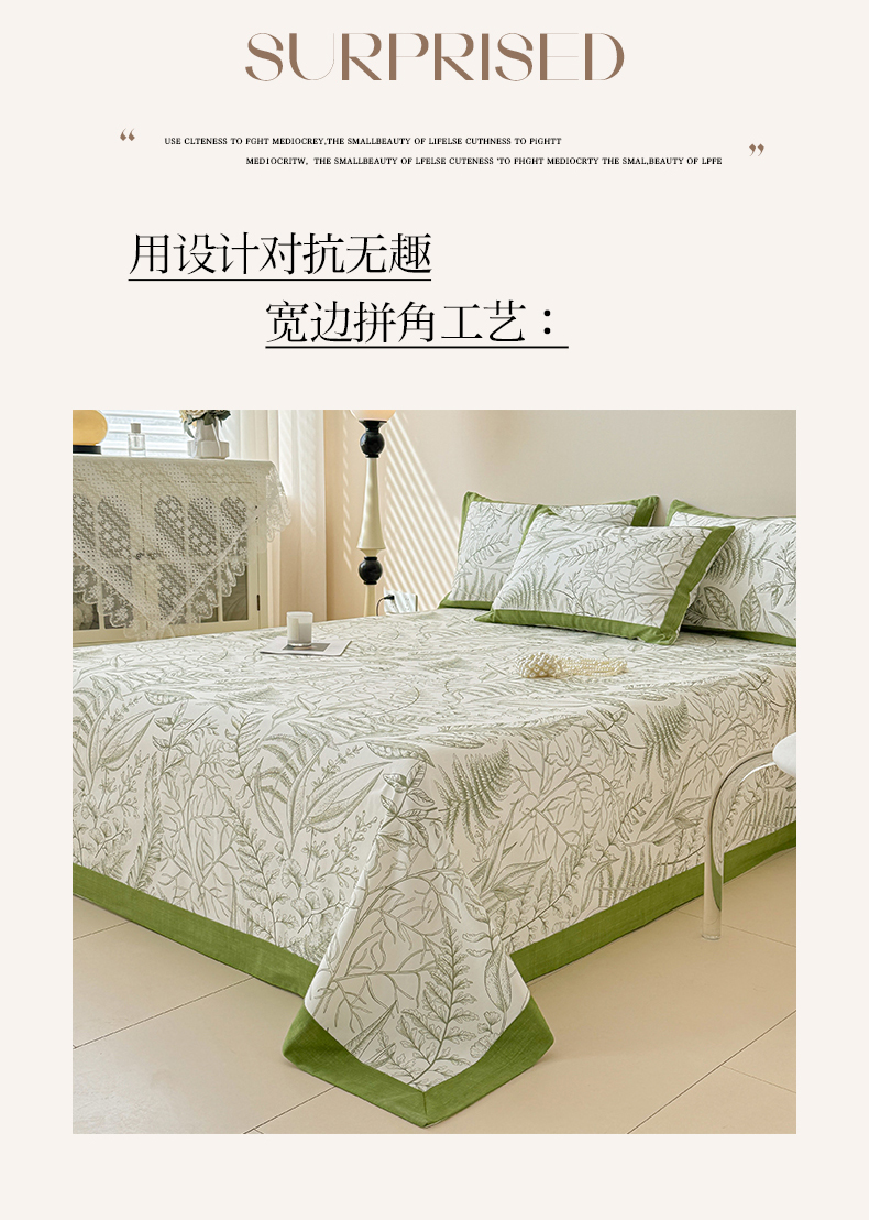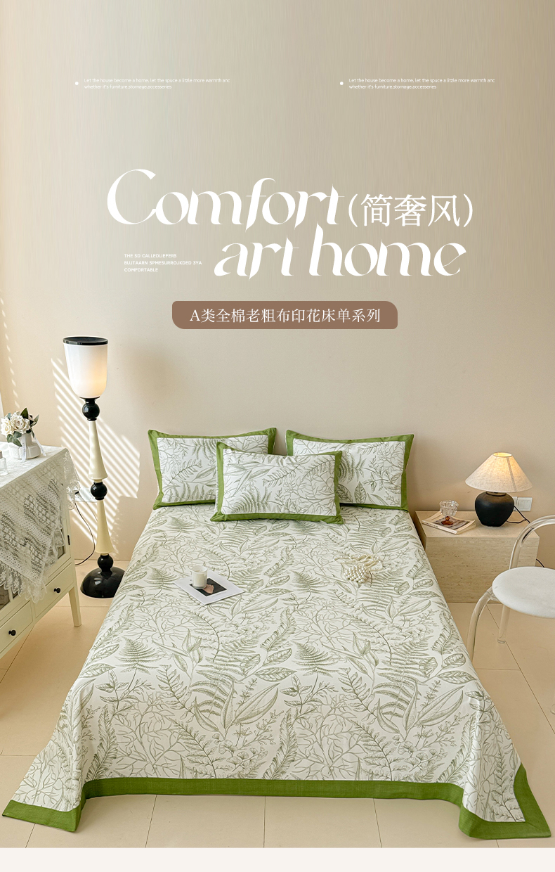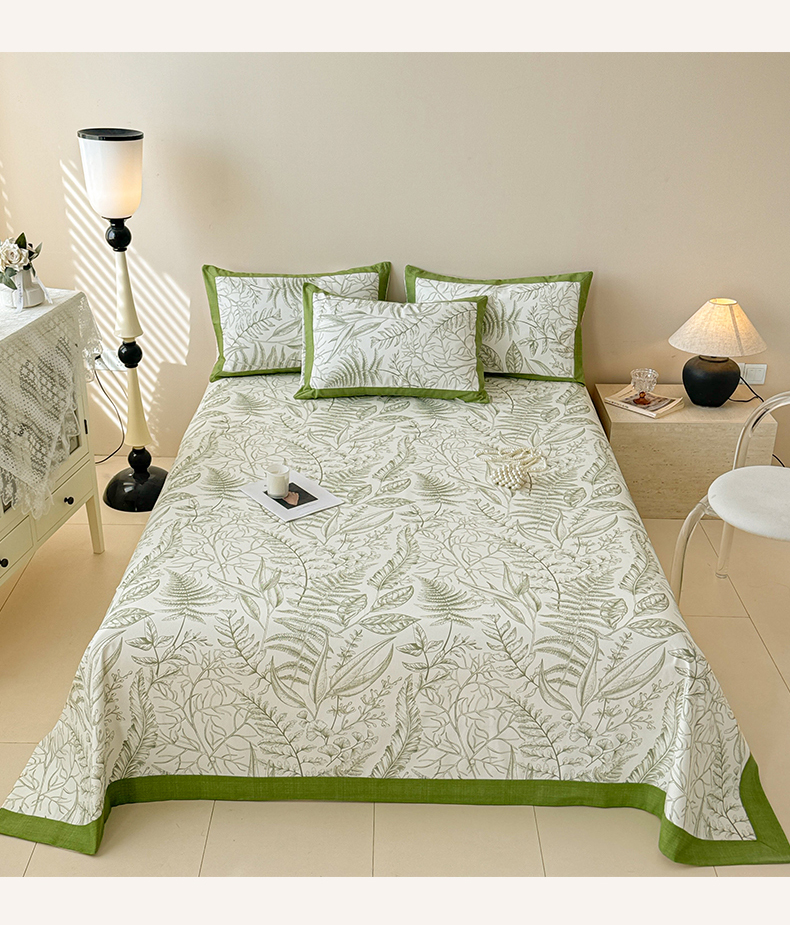 • 91家纺网 家纺一手货源 找家纺 蓝邻家纺 2025新款100%新疆原棉粗布小清新拼角工艺款系列单床单 雨棠-绿