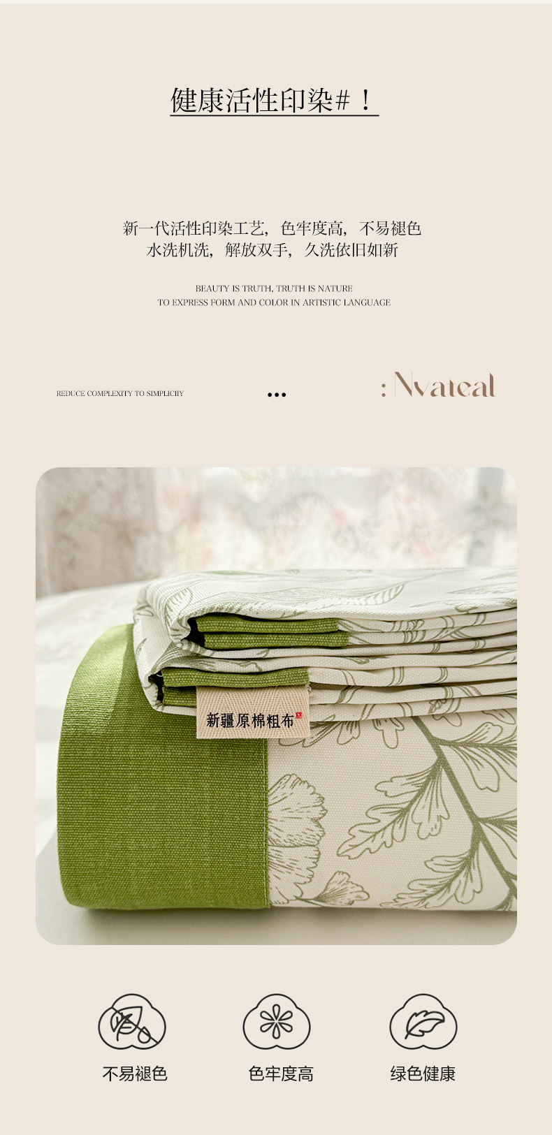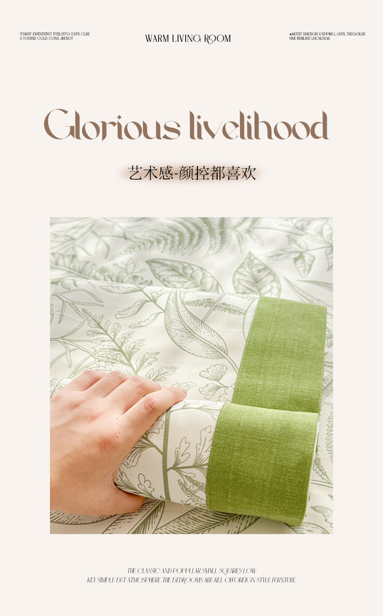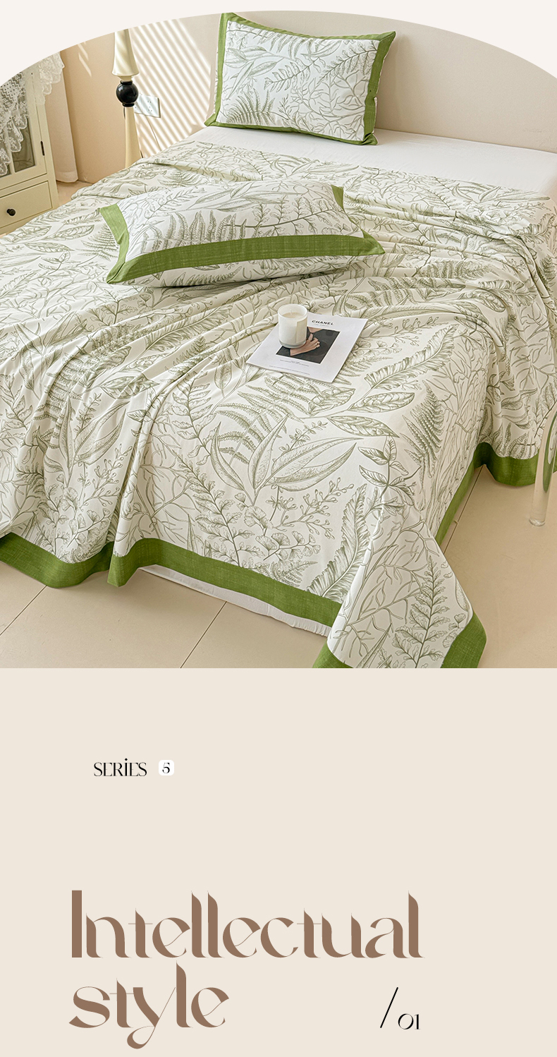 • 91家纺网 家纺一手货源 找家纺 蓝邻家纺 2025新款100%新疆原棉粗布小清新拼角工艺款系列单床单 雨棠-绿