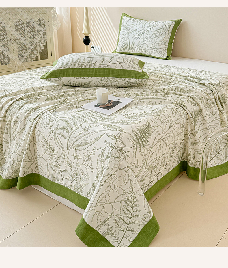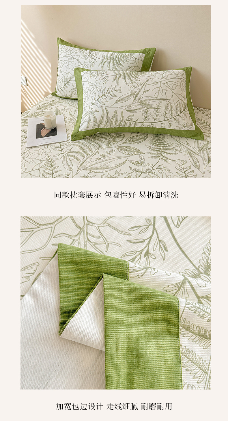 当前位置: 91家纺网 > 商品网购 > 床上用品 > 床单 > 蓝邻家纺 2025新款100%新疆原棉粗布小清新拼角工艺款系列单床单 雨棠-绿