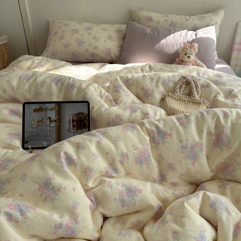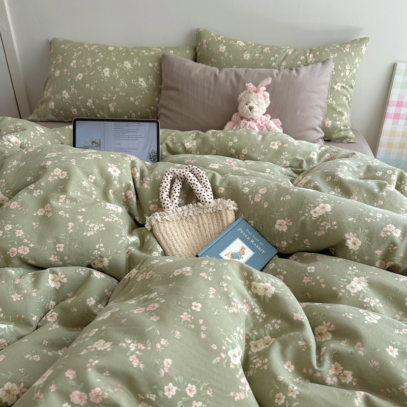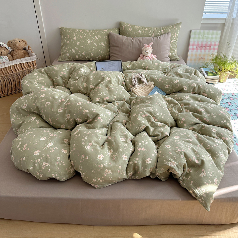 商品名称:桃喜 2025新款春夏全棉双层纱碎花系列四件套 烟雨玉