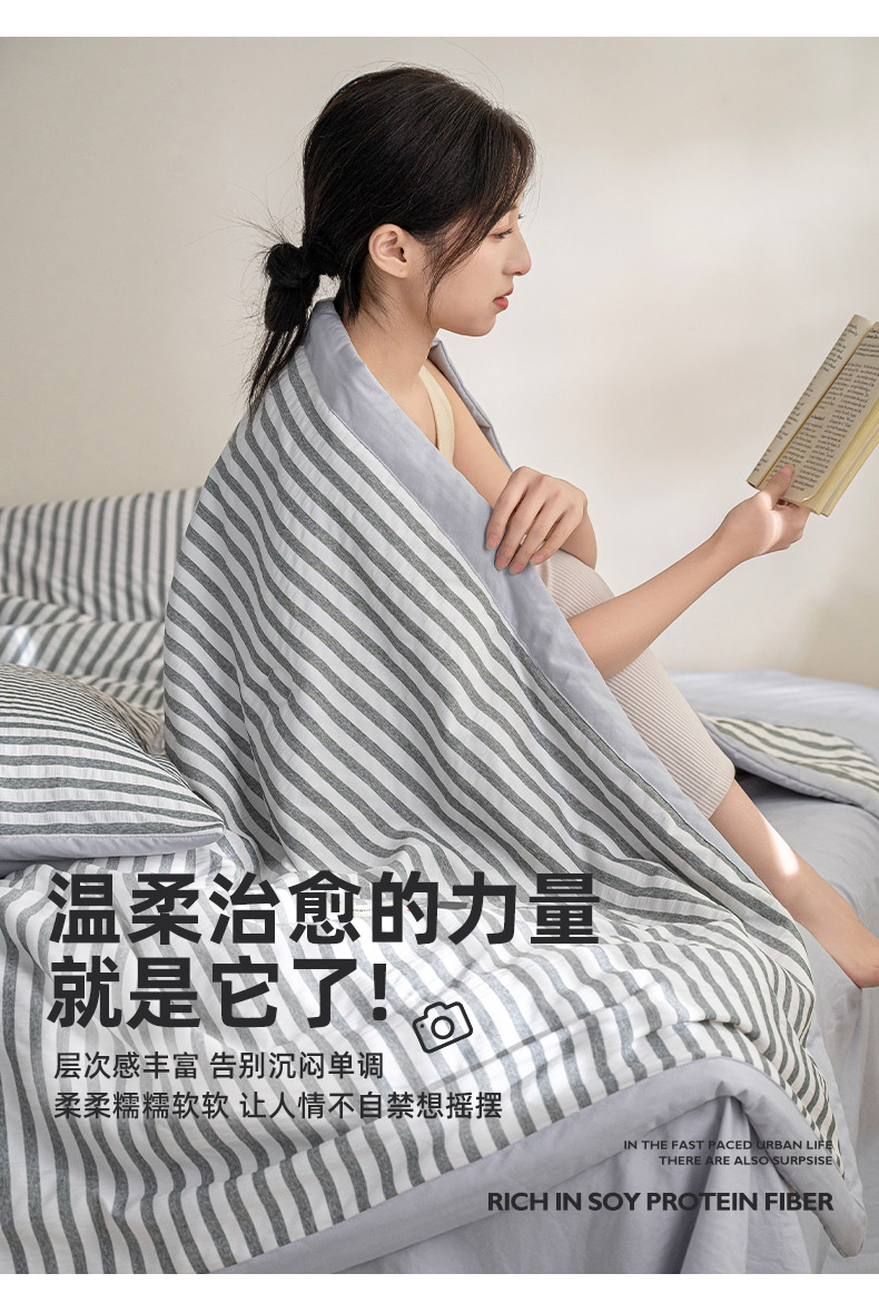 (总)吾诺家居 2026新款全棉纯棉大提花新疆棉花夏被夏凉被空调被四件套-律动,律动-奶咖,律动-浅灰,律动-深灰,律动-天兰