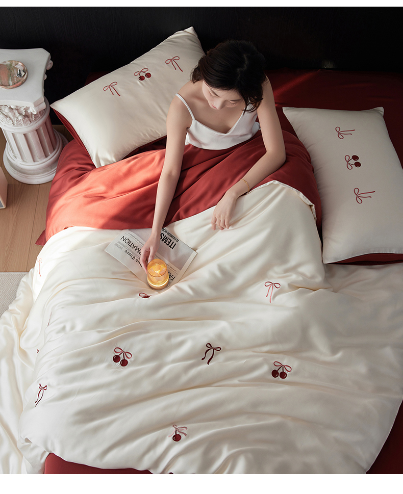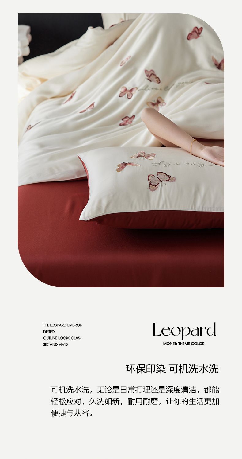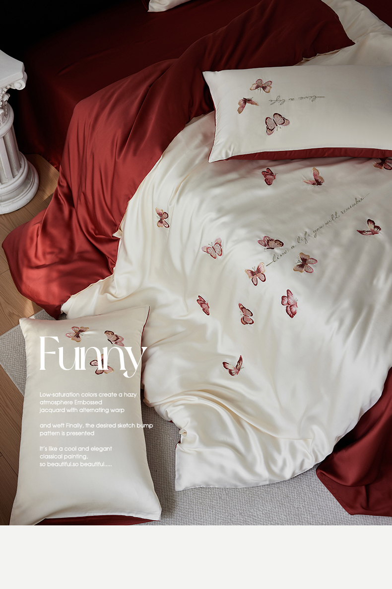 当前位置: 91家纺网 > 商品网购 > 床品套件 > 四件套 > 其它四件套 > 安莱生活 2025兰精进口60S天丝绣花四件套(红色系列) 绮梦红蝶
