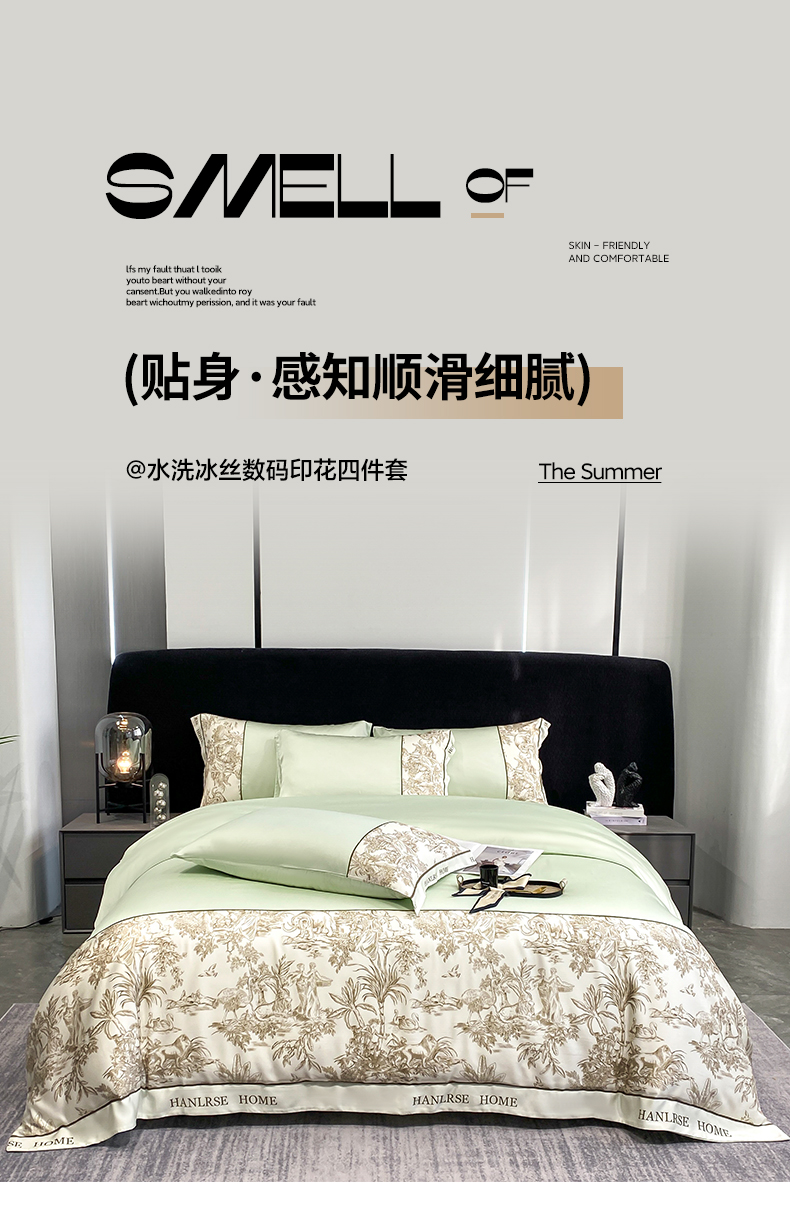 商品名称:花愿(原花纪) 2025新款水洗冰丝印花四件套 索菲亚 水果清香
