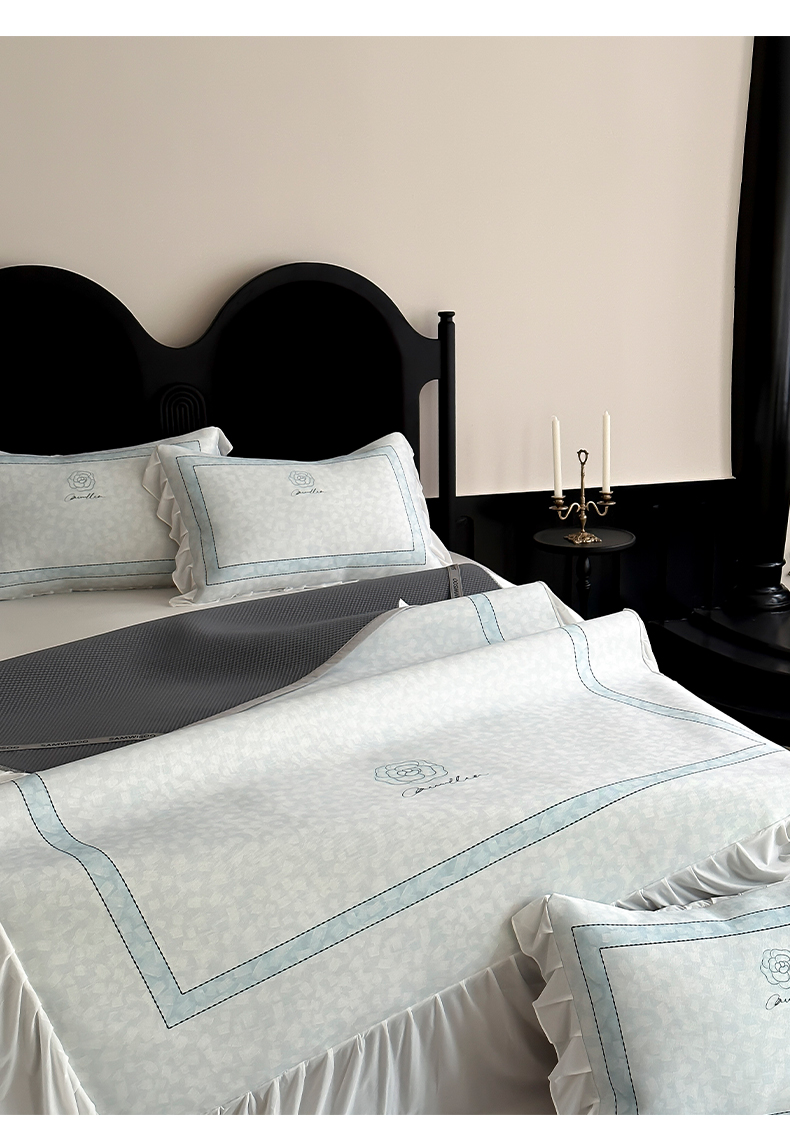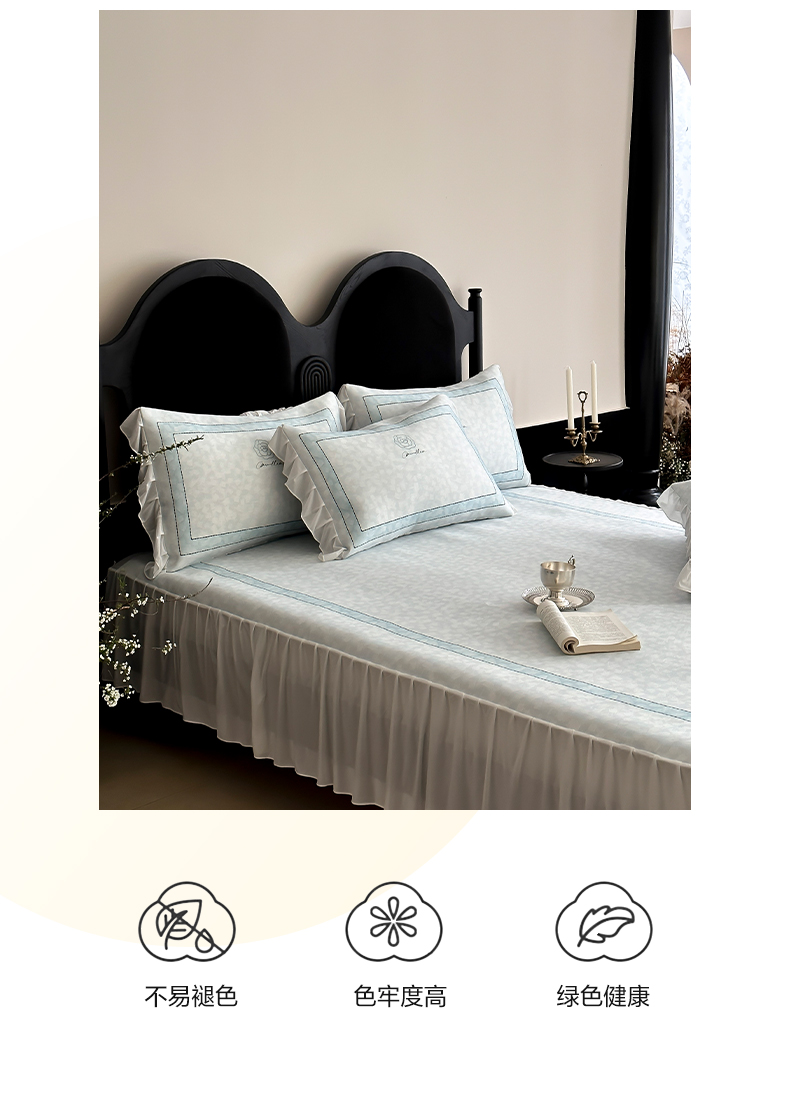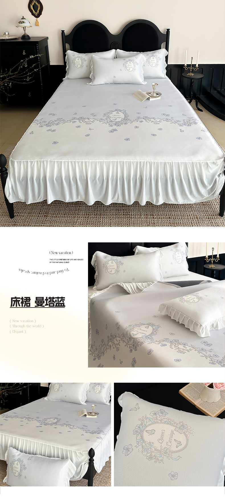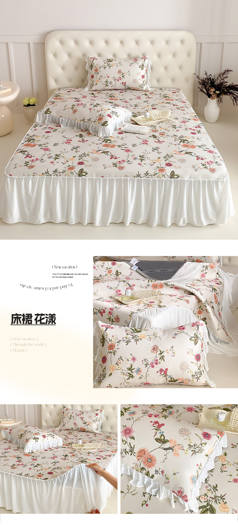 三味舒屋 2025新款法式床裙款数码印花冰丝凉席三件套 床裙-花漾