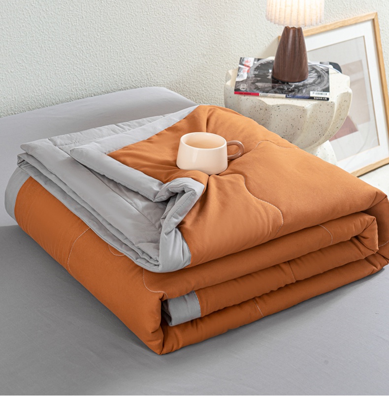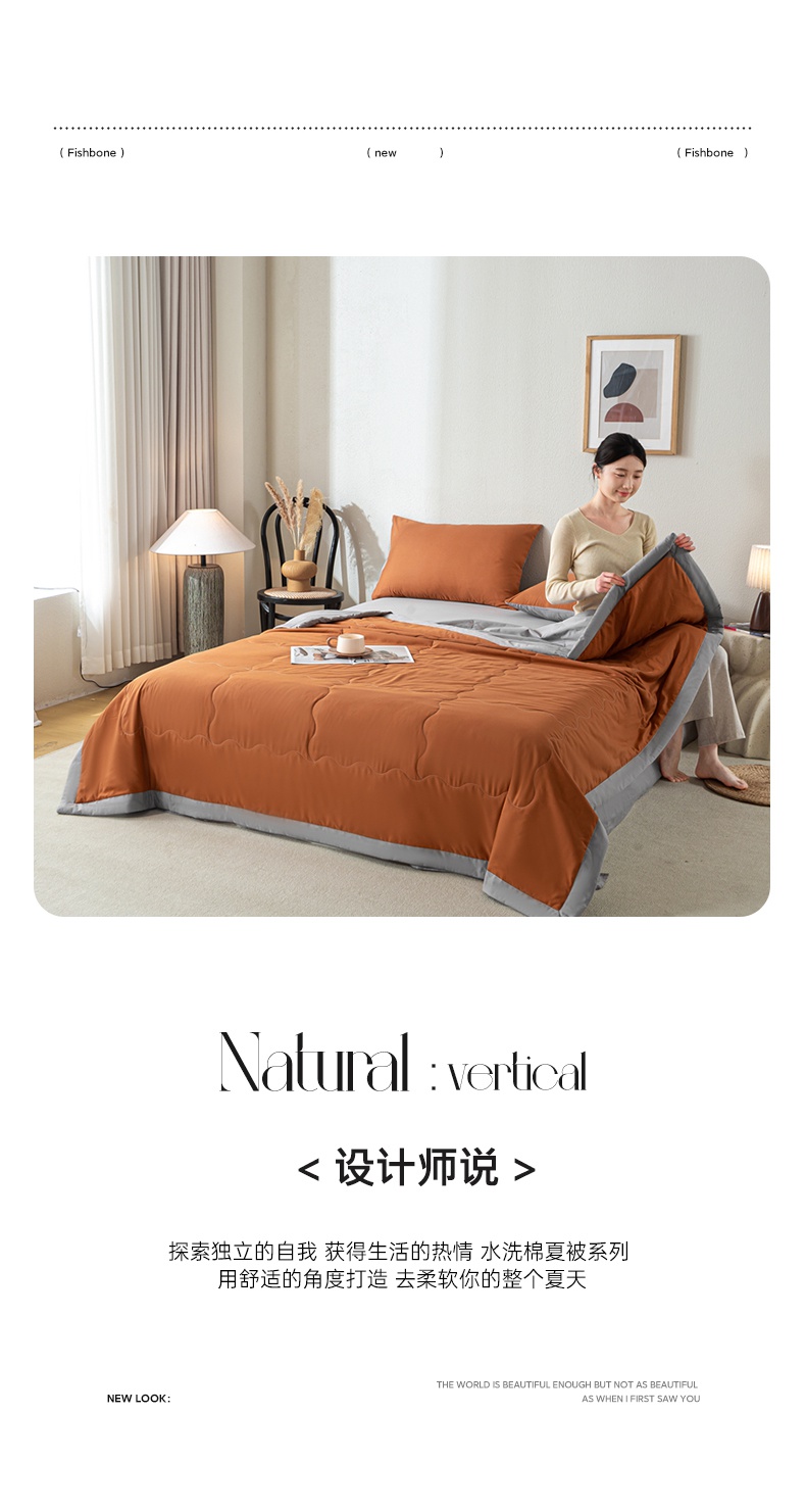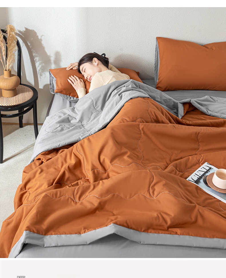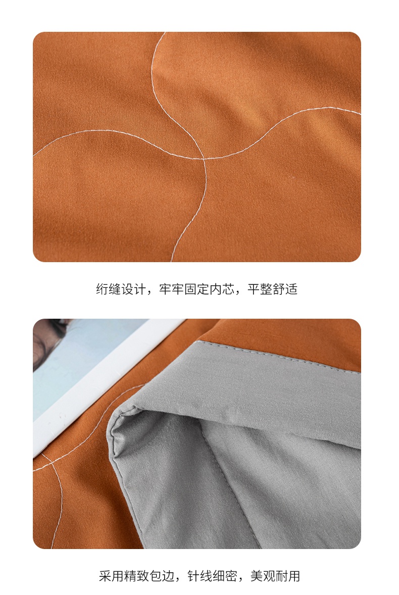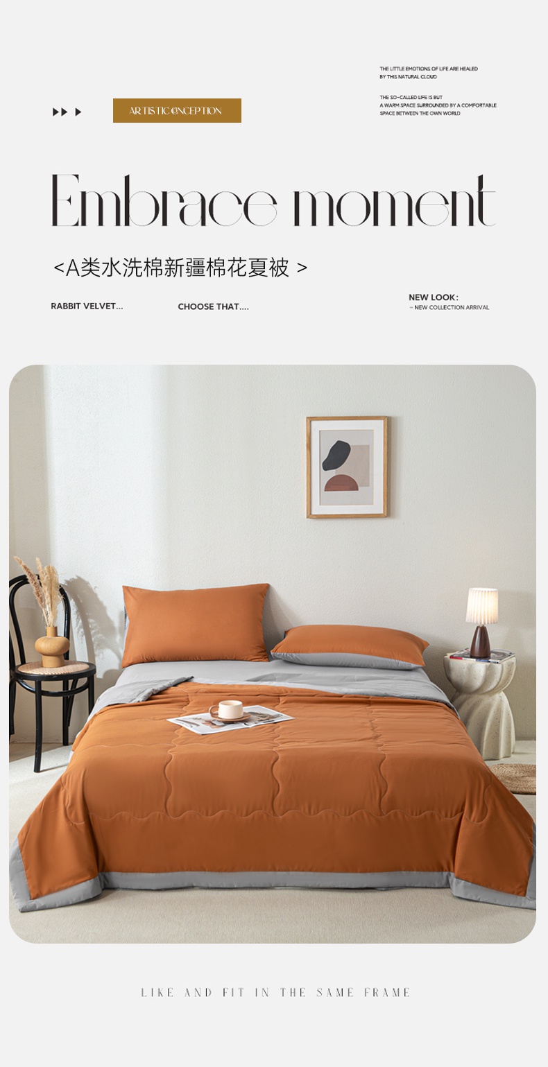 • 91家纺网 家纺一手货源 找家纺 慕木家纺 2025新款A类水洗棉无印风纯色新疆棉花夏被空调被(抽空压缩可供跨境) 活力橙+灰