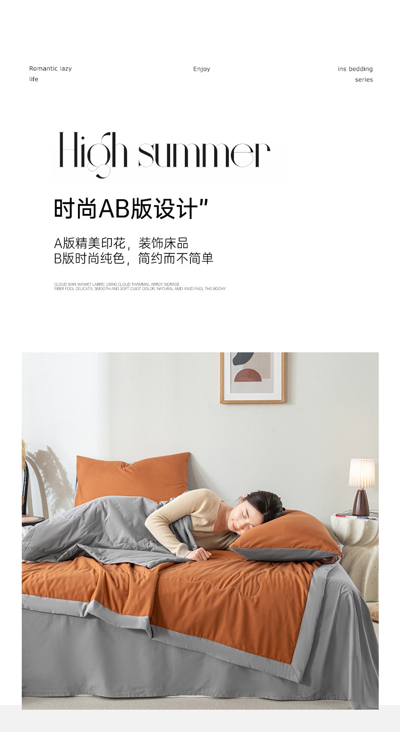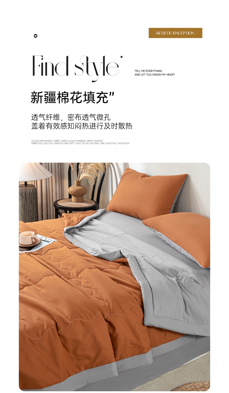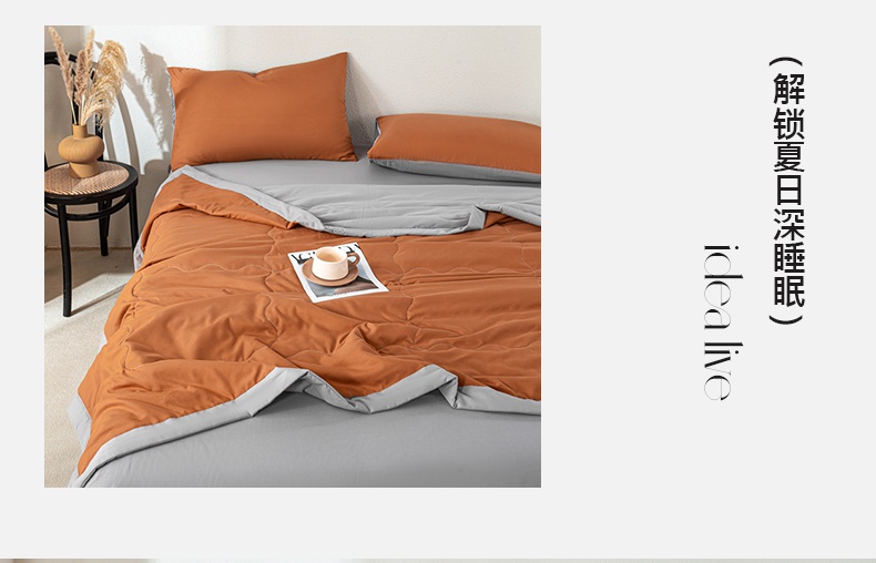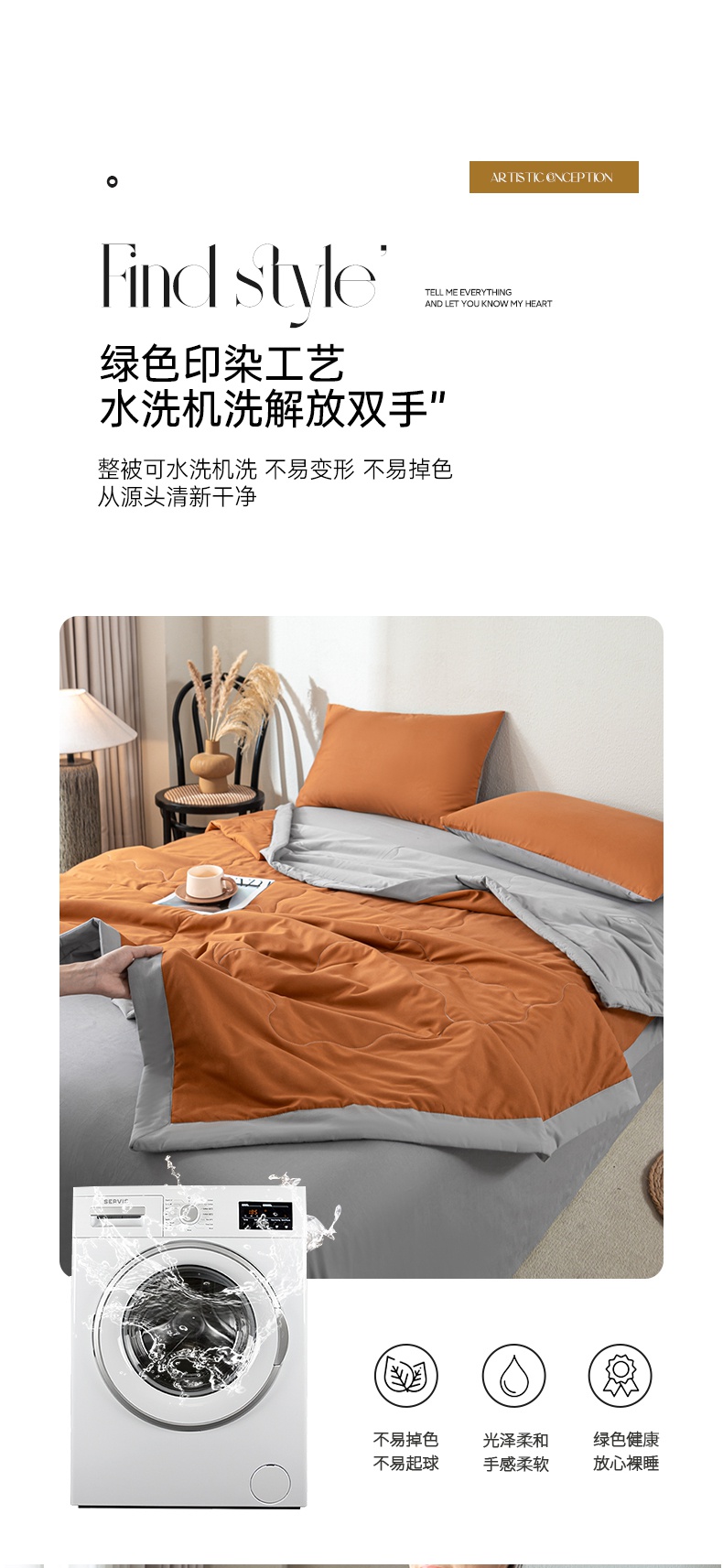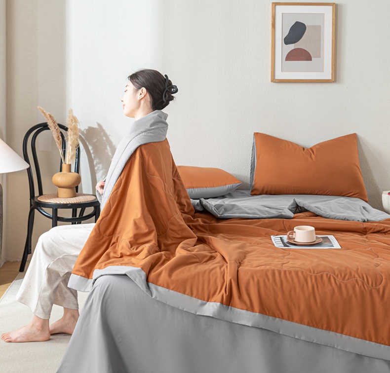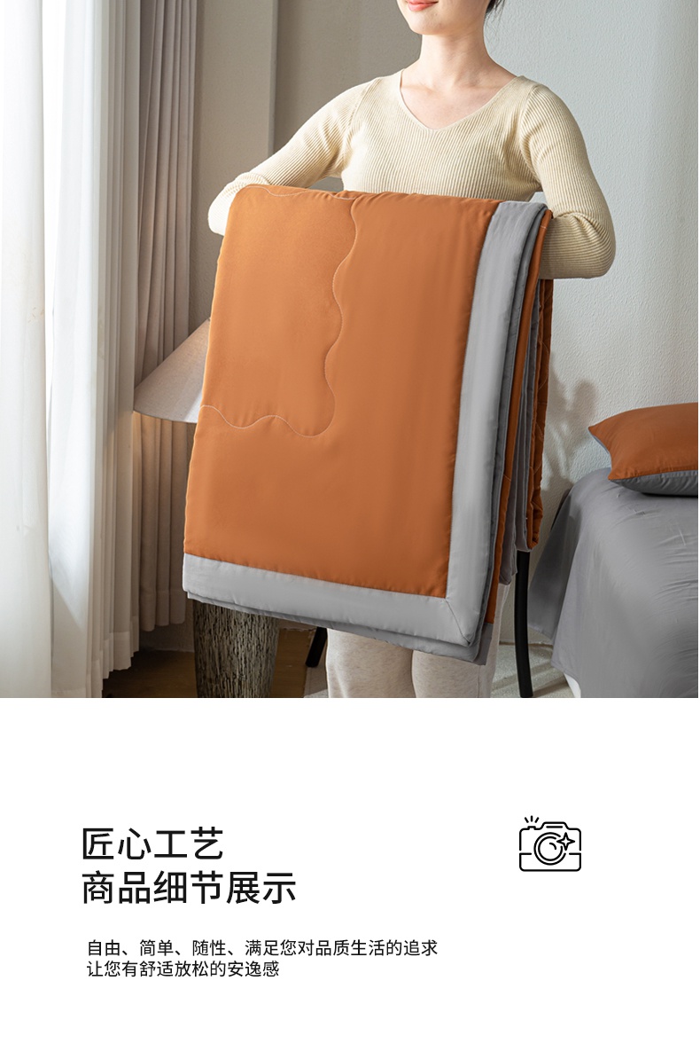 • 91家纺网 家纺一手货源 找家纺 慕木家纺 2025新款A类水洗棉无印风纯色新疆棉花夏被空调被(抽空压缩可供跨境) 活力橙+灰