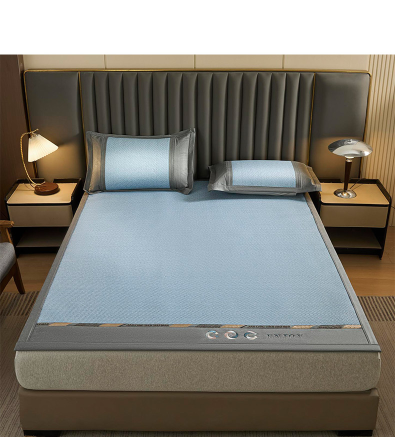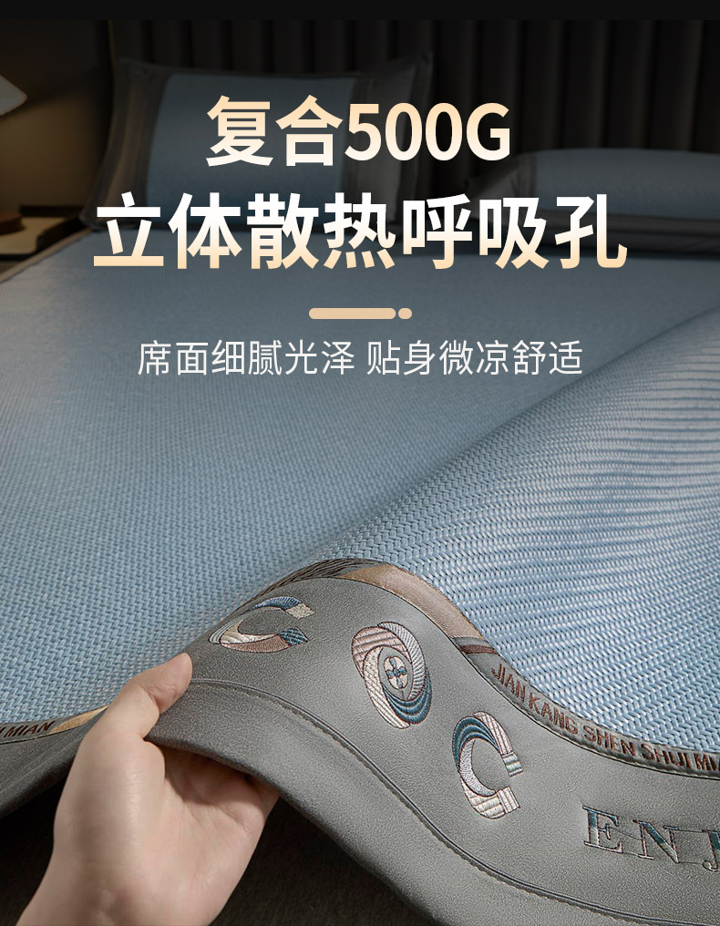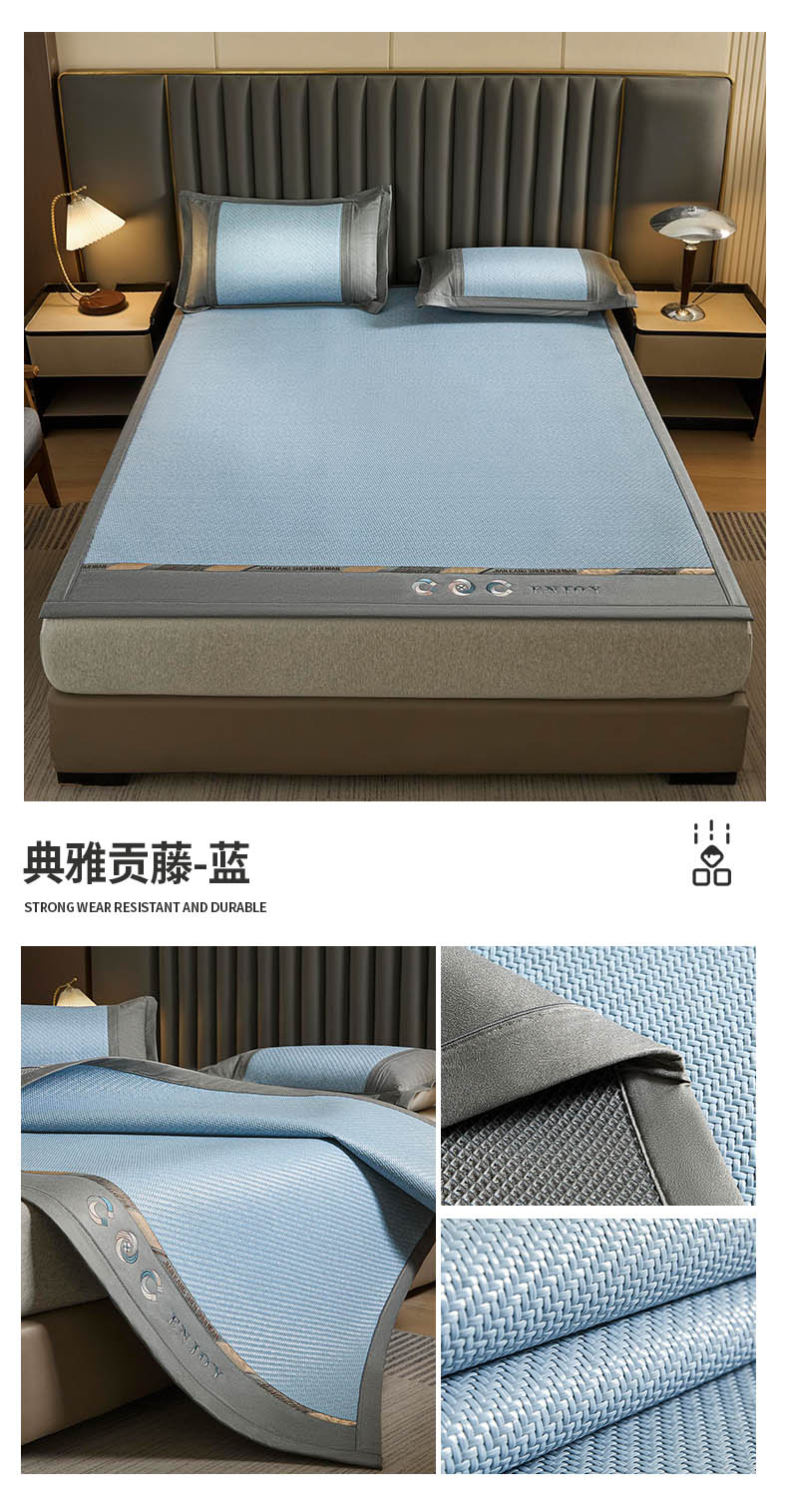 商品名称:鑫琪莱家纺 2025新款PE雪藤刺绣工艺款凉席典雅贡藤-蓝