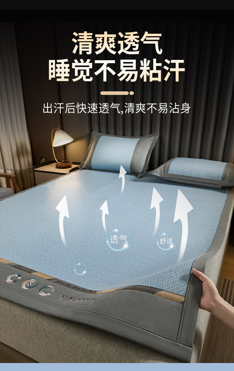 (总)鑫琪莱家纺 2025新款学生PE凉感藤席,典雅贡藤-灰,典雅贡藤-咖,典雅贡藤-蓝,组合图(仅供参考)