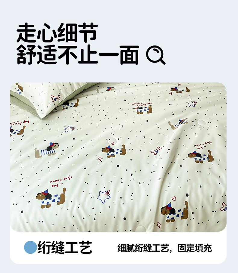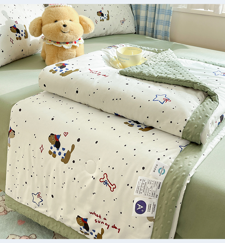 当前位置: 91家纺网 > 商品网购 > 被子 > 夏被 > 盛秋家纺 2026新款A类水洗棉豆豆夏被系列 腊肠狗+明灰