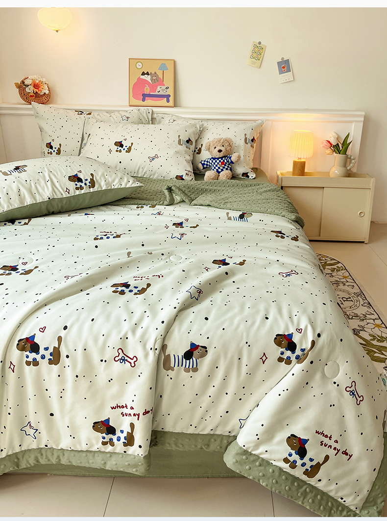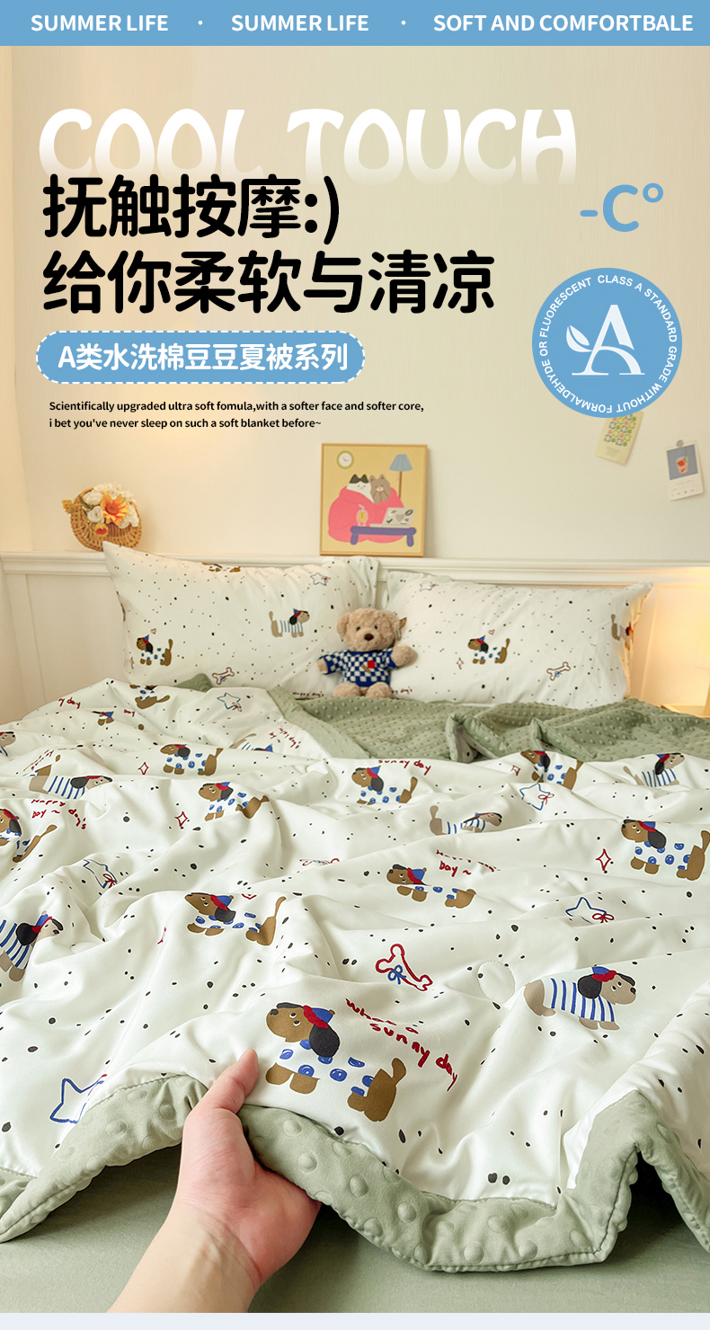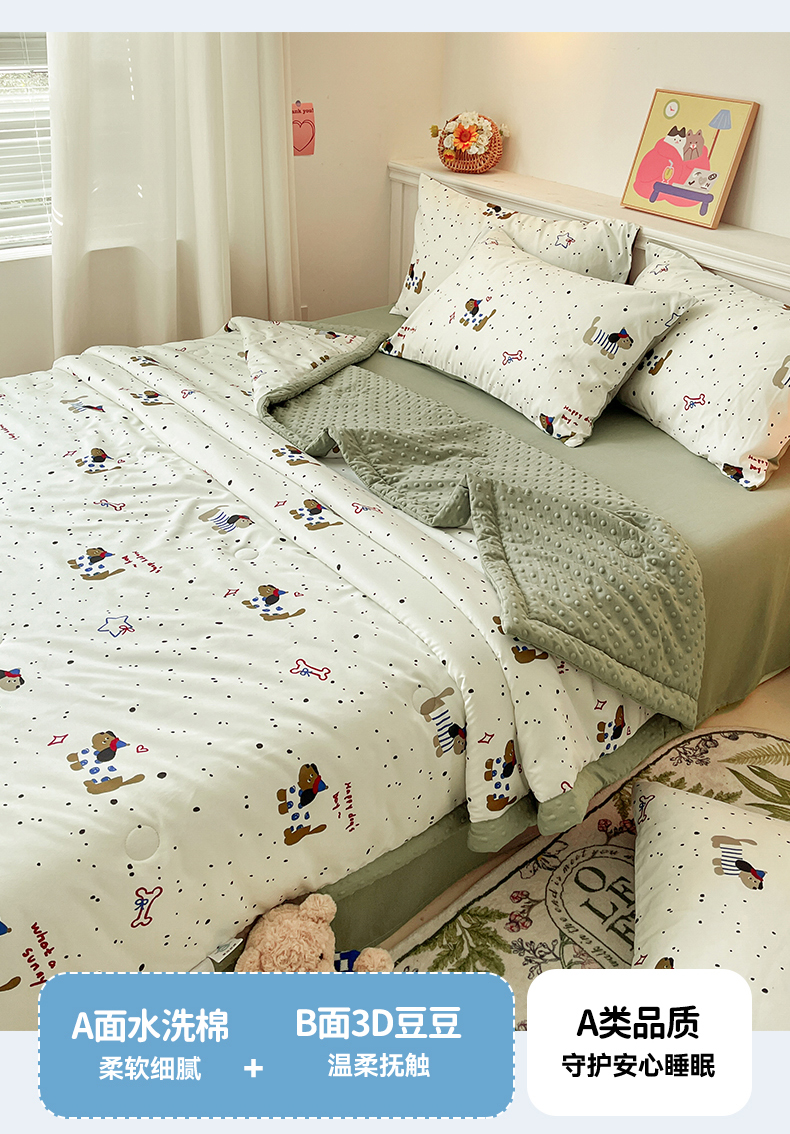 盛秋家纺 2026新款A类水洗棉豆豆夏被系列 腊肠狗+明灰