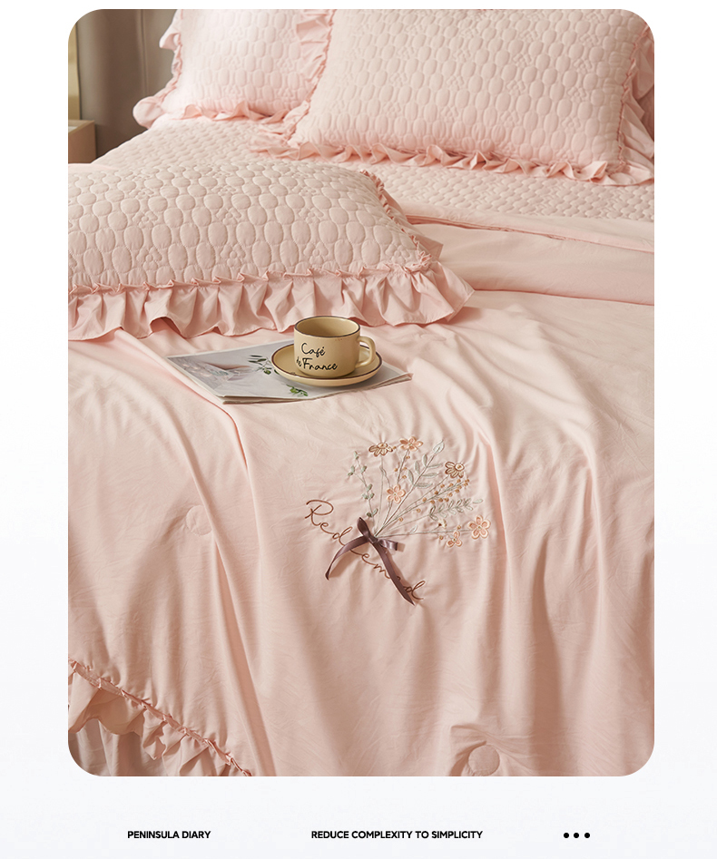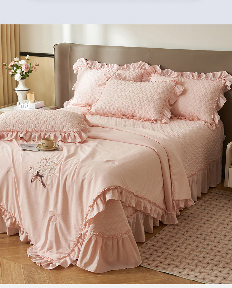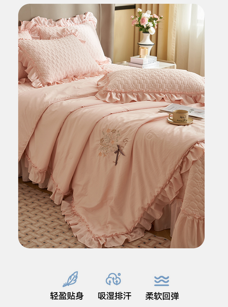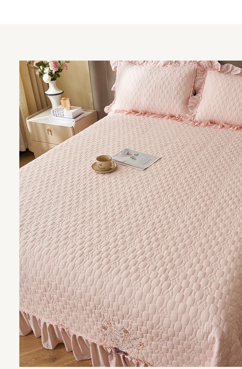 商品名称:恒爱家纺 2025新款A类情缘多功能床盖四件套 香妃粉