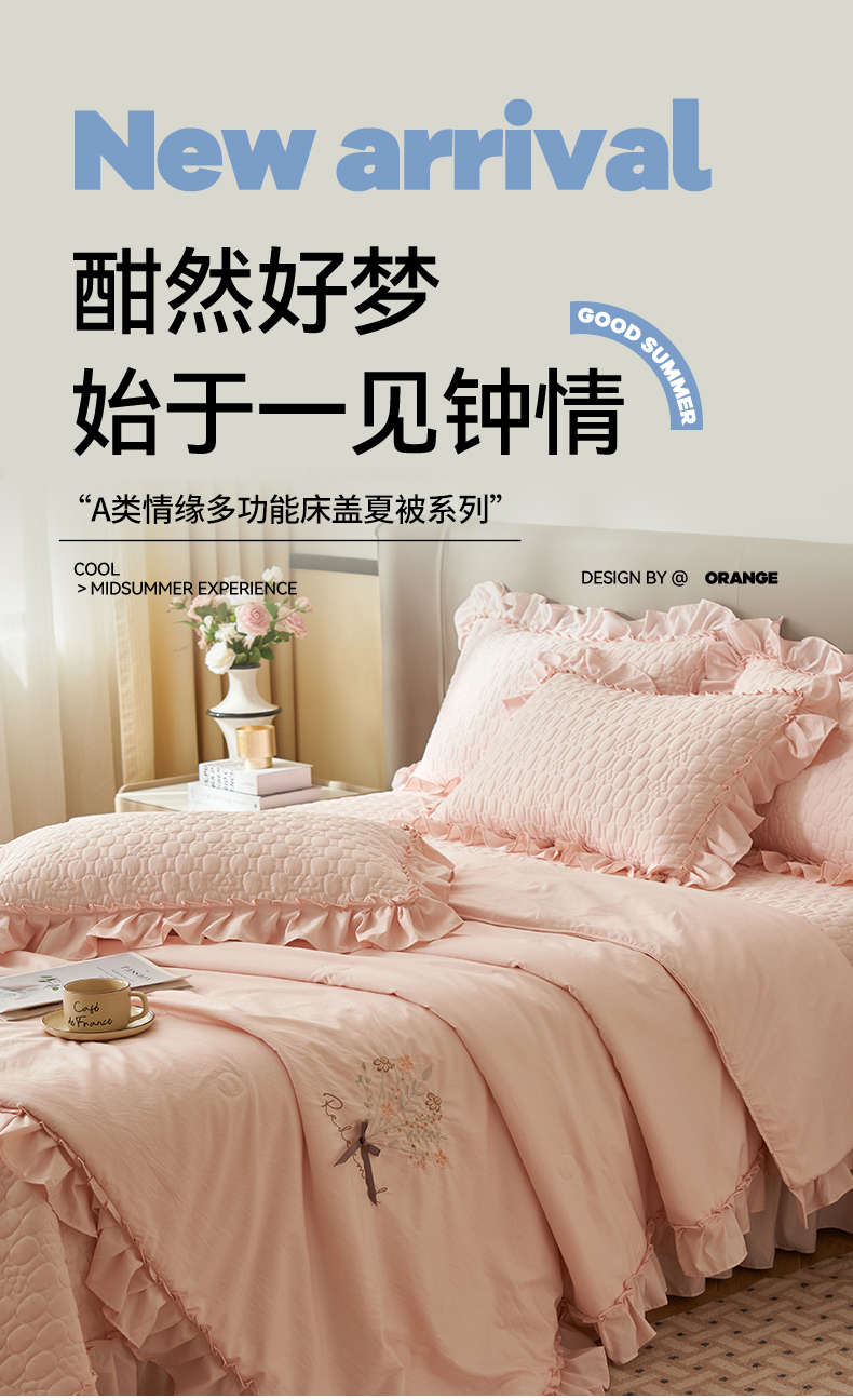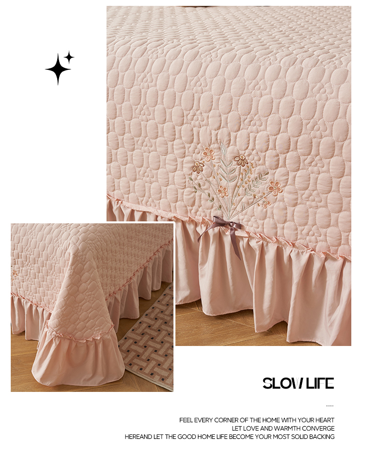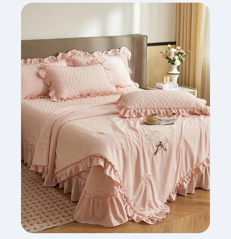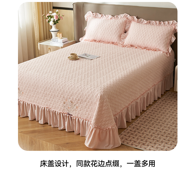 恒爱家纺 2025新款A类情缘多功能床盖四件套 香妃粉