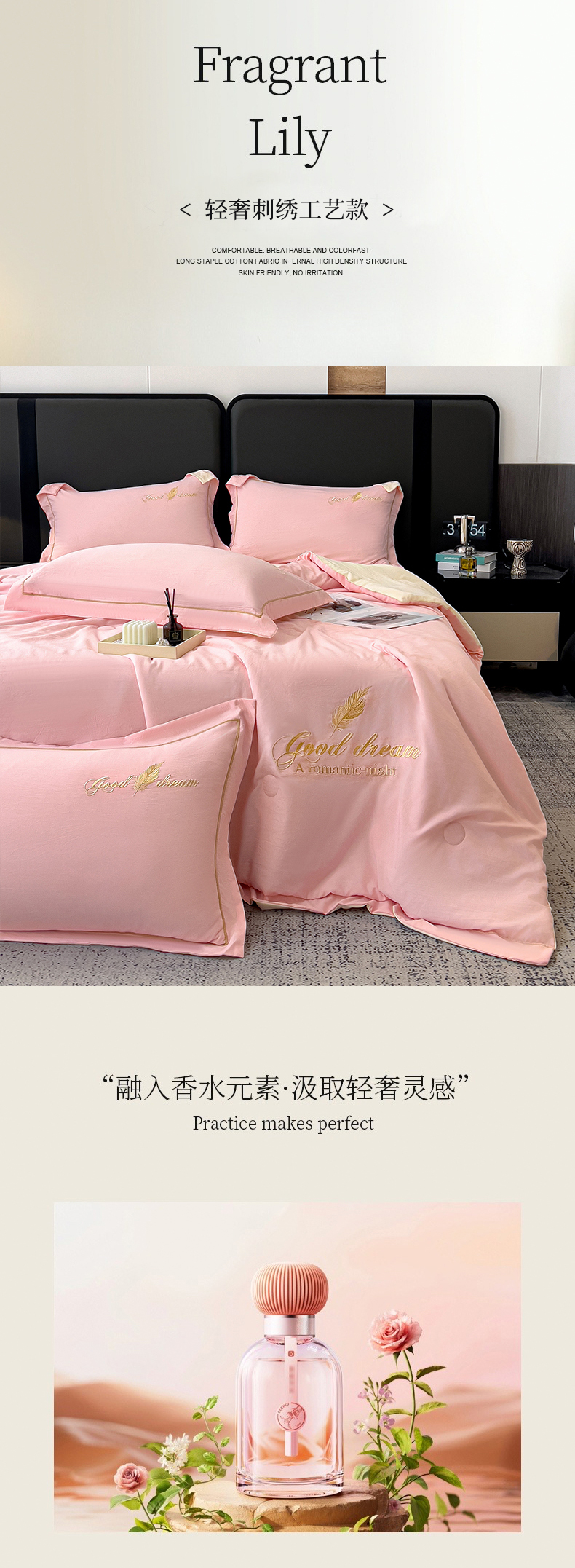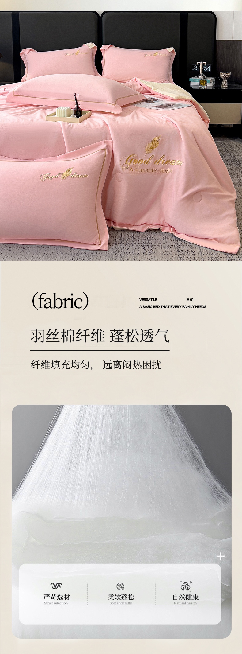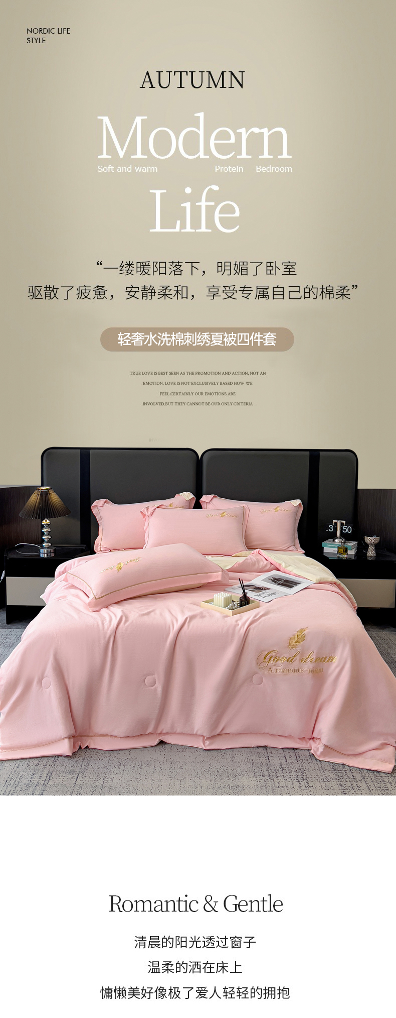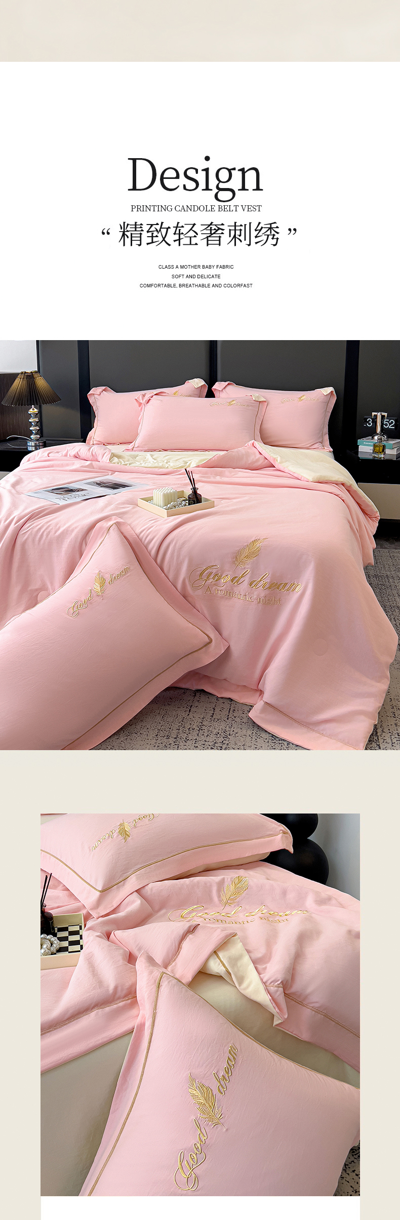• 91家纺网 家纺一手货源 找家纺 灰鲸 2025春夏新款轻奢轻羽刺绣水洗棉夏被四件套系列 轻羽-樱花粉+奶油黄