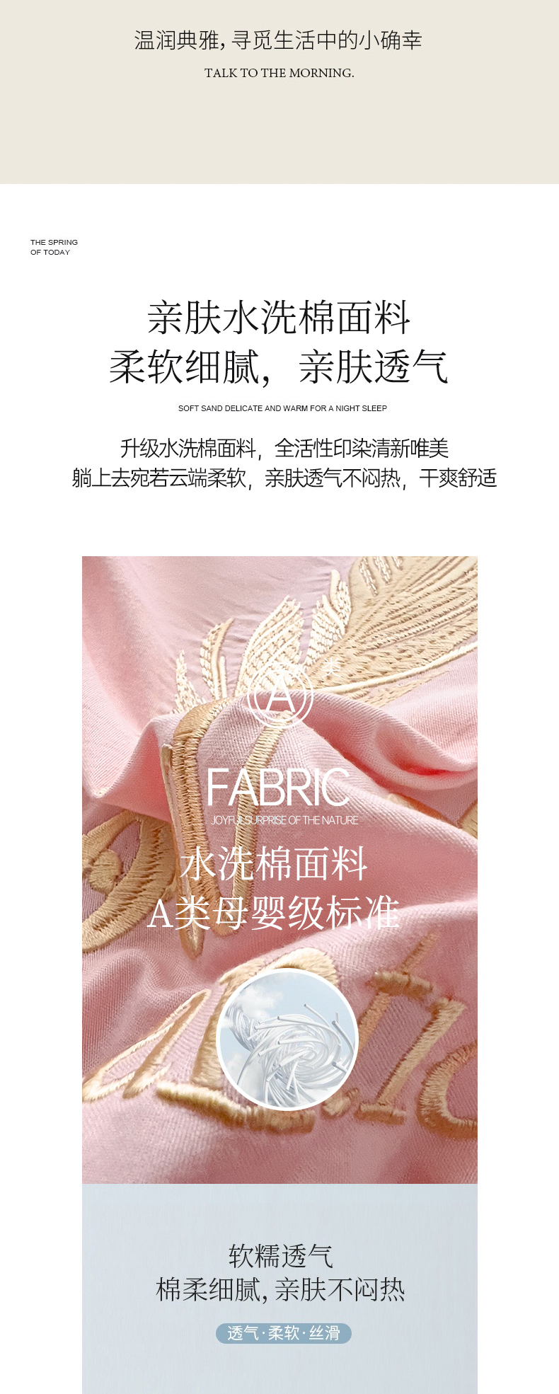 当前位置: 91家纺网 > 商品网购 > 被子 > 夏被 > 灰鲸 2025春夏新款轻奢轻羽刺绣水洗棉夏被四件套系列 轻羽-樱花粉+奶油黄
