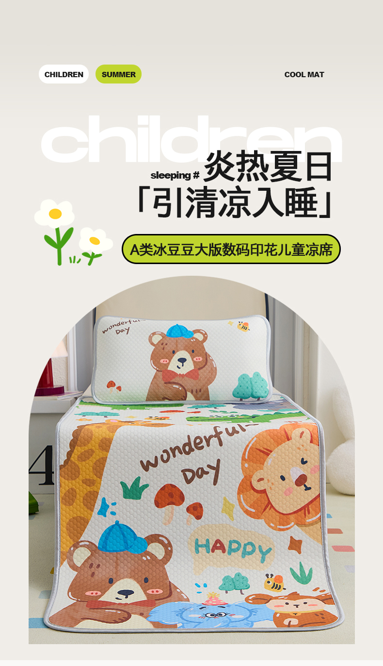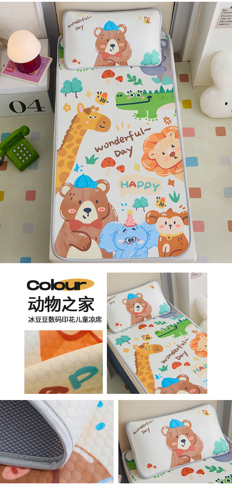 欣品希家纺 2025新款A类冰豆豆数码印花儿童凉席 动物之家
