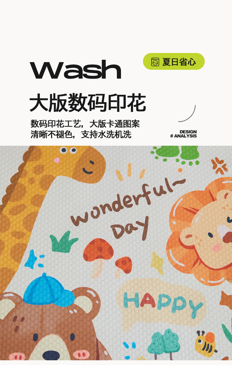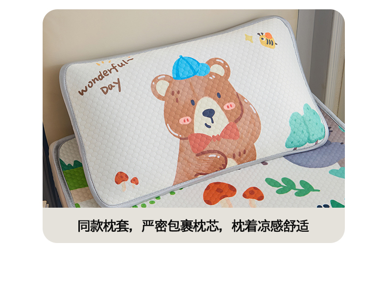 商品名称:欣品希家纺 2025新款A类冰豆豆数码印花儿童凉席 动物之家
