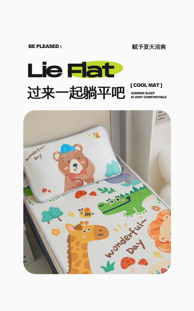(总)欣品希家纺 2025新款A类冰豆豆数码印花儿童凉席,饼干熊,波点狗,动物之家,粉红萌兔,绿恐龙,企鹅宝宝,熊猫豆豆,长鼻象