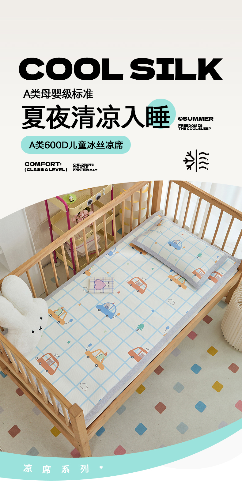 欣品希家纺 2025新款A类600D儿童冰丝凉席 格子汽车