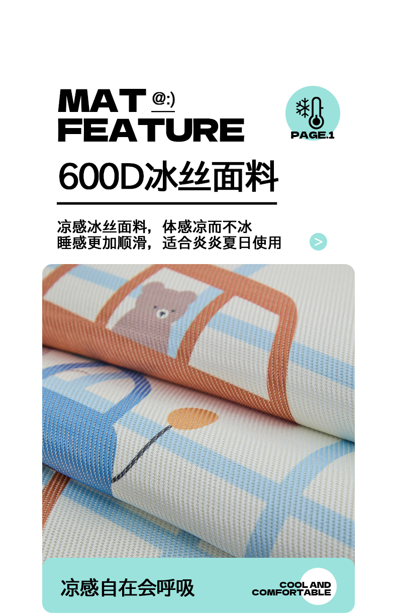 (总)欣品希家纺 2025新款A类冰豆豆数码印花儿童凉席,饼干熊,波点狗,动物之家,粉红萌兔,绿恐龙,企鹅宝宝,熊猫豆豆,长鼻象