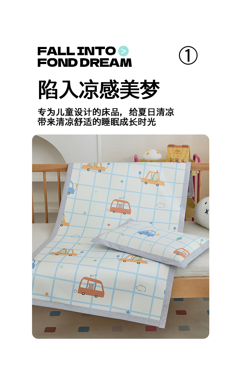商品名称:欣品希家纺 2025新款A类600D儿童冰丝凉席 格子汽车