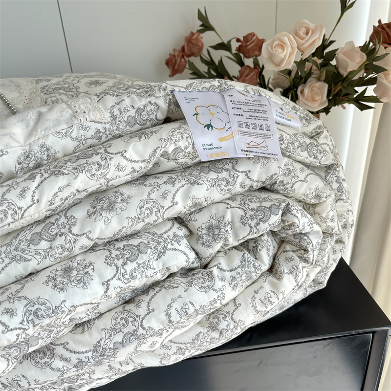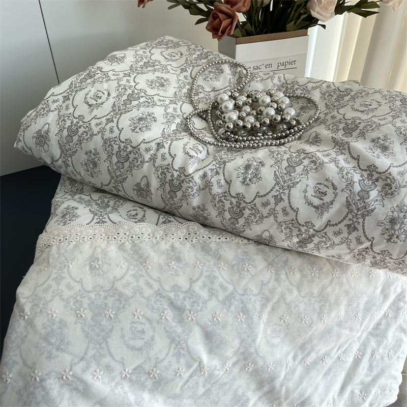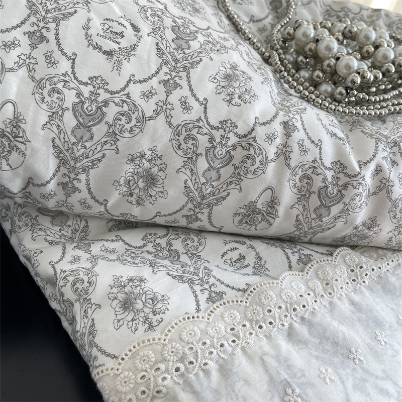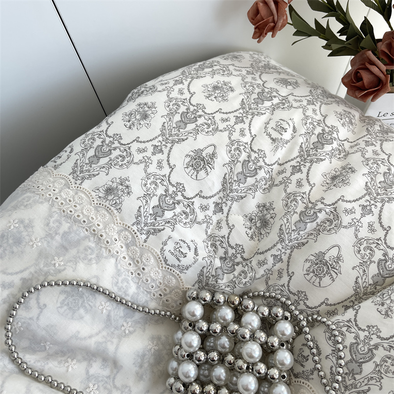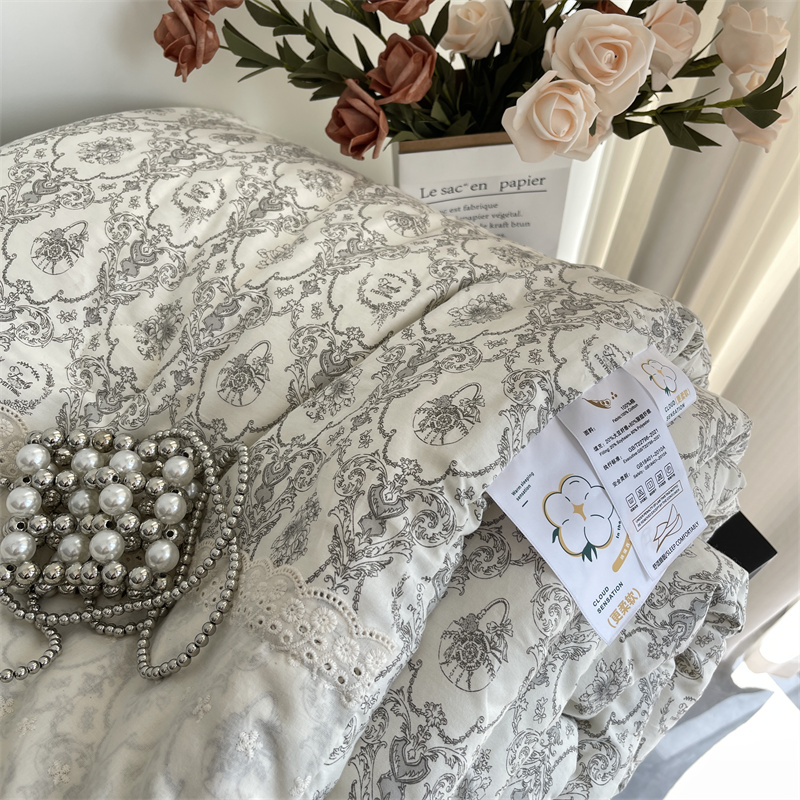 奈萝家纺 奈萝2025新款全棉13372法式花边纯棉夏被春秋被 浅黛灰