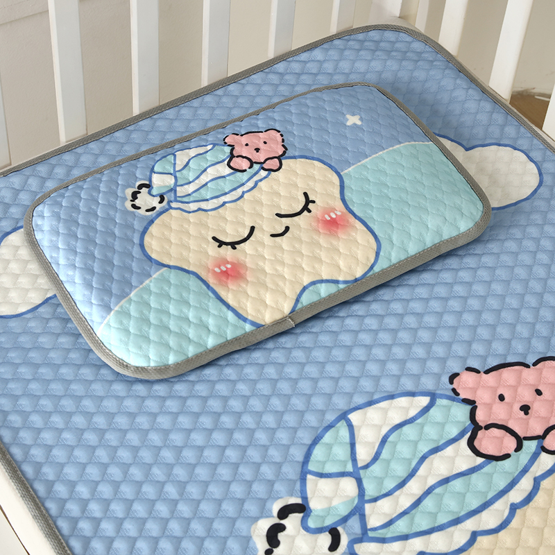 (总)沁童儿童用品店 2025新款儿童冰豆豆凉席两件套,小恐龙,彩虹星星,可爱小熊,小女孩,熊宝宝,月亮宝宝