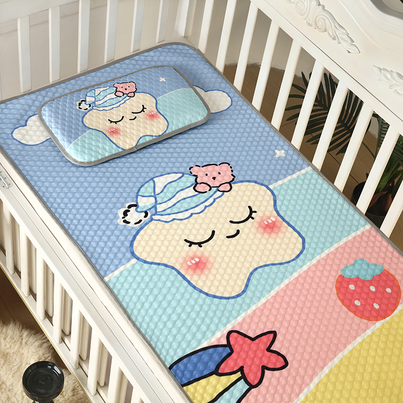 沁童儿童用品店 2025新款儿童冰豆豆凉席两件套 彩虹星星