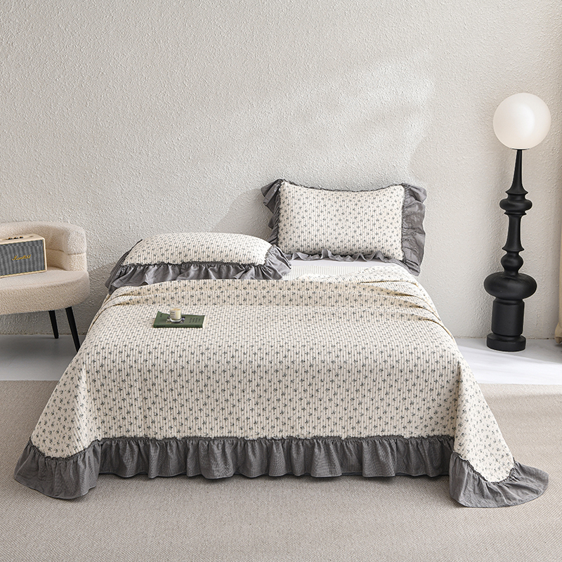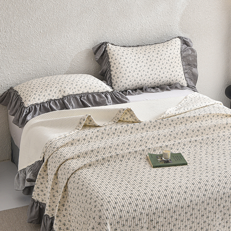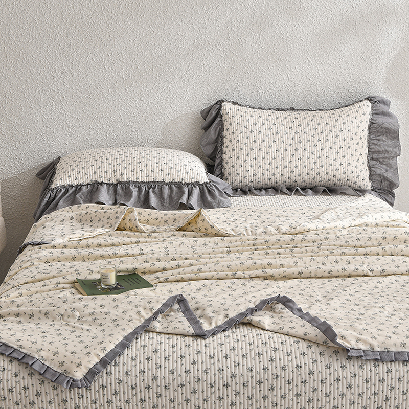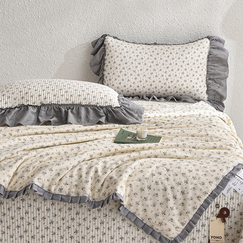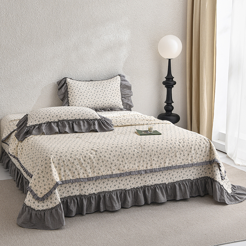商品名称:有货 2025春夏新款全棉纯棉双层纱夏被夏凉被空调被+床盖三件套 墨砚-灰