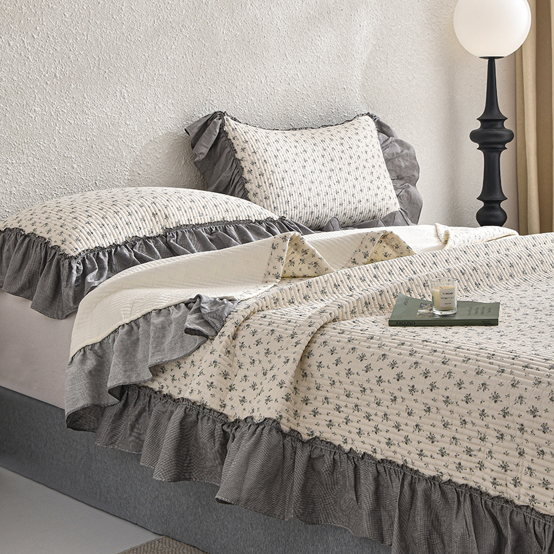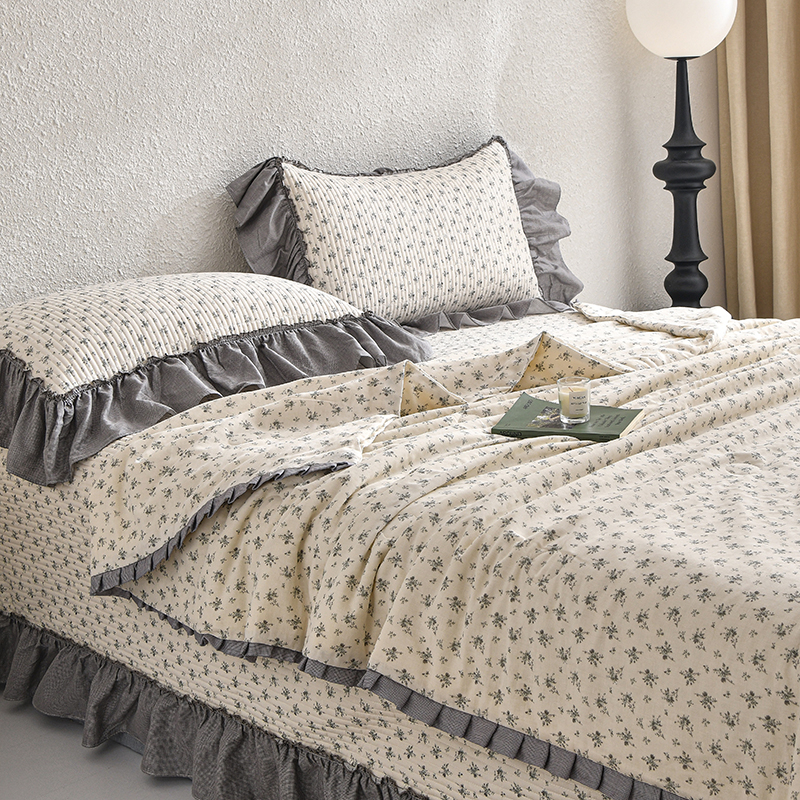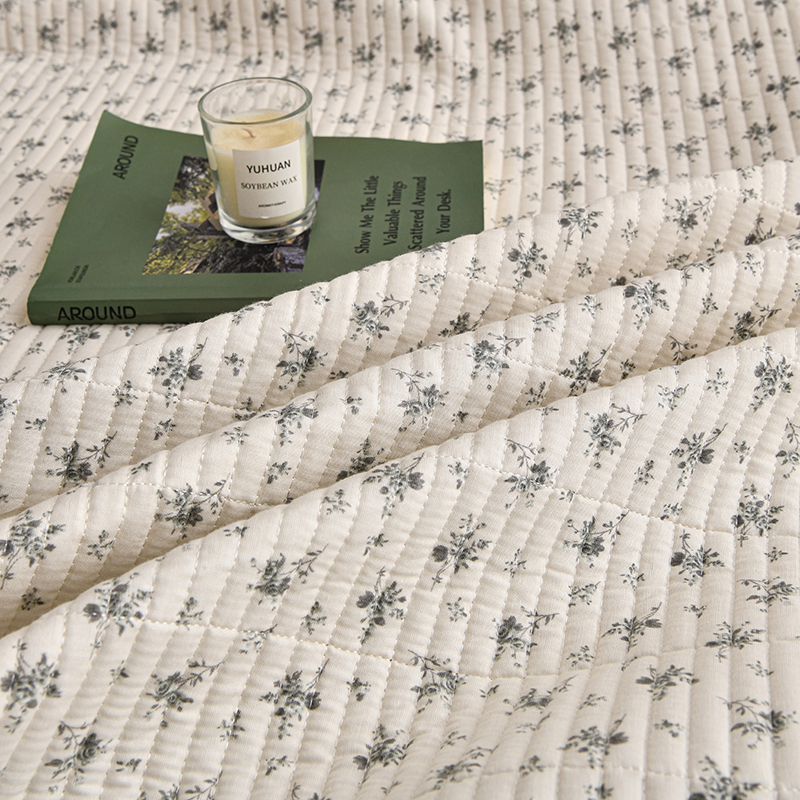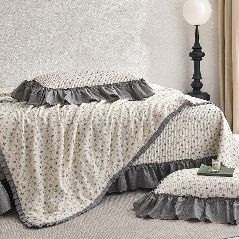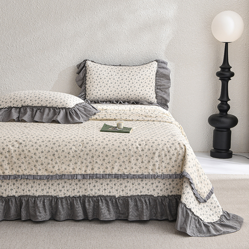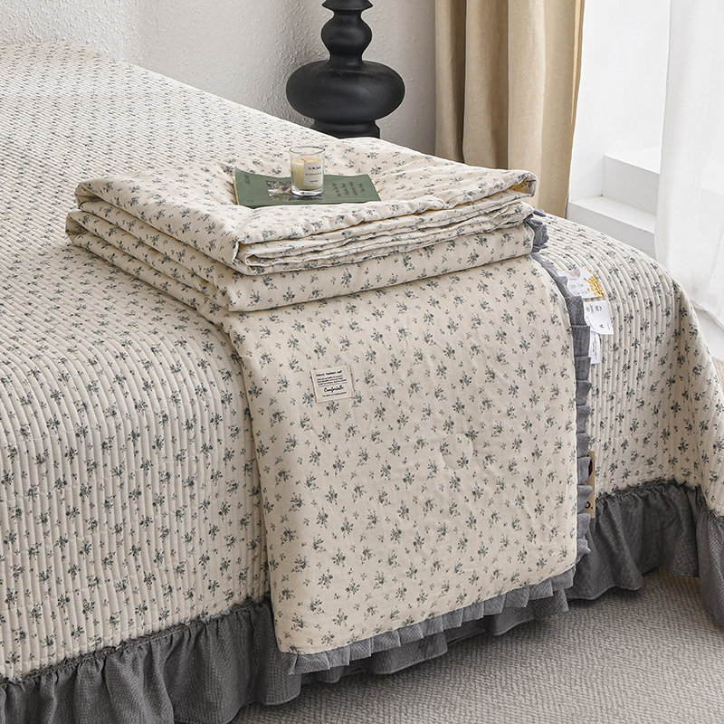商品名称:有货 2025春夏新款全棉纯棉双层纱夏被夏凉被空调被+床盖三件套 墨砚-灰