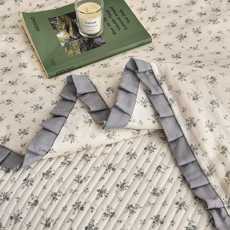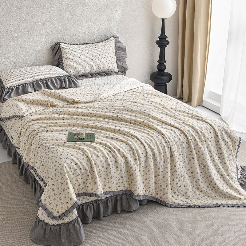 (总)有货 2023新款小清新花边韩版水洗棉麻豆豆夏被简约复古风,枫情,格格,绿野,绿意,南风,暖心,森林,盛开,太空,微笑,向阳花,小鹿,枝丫