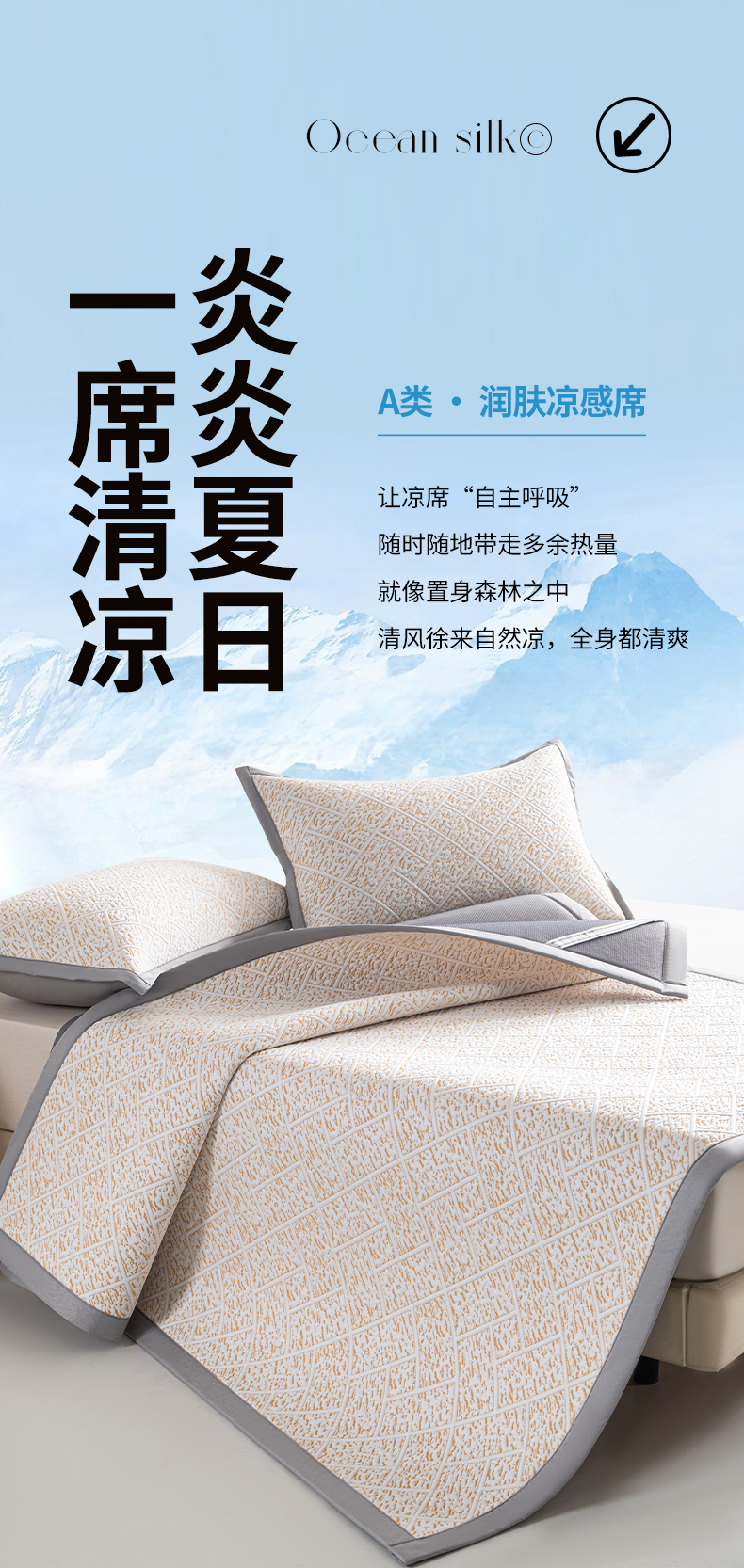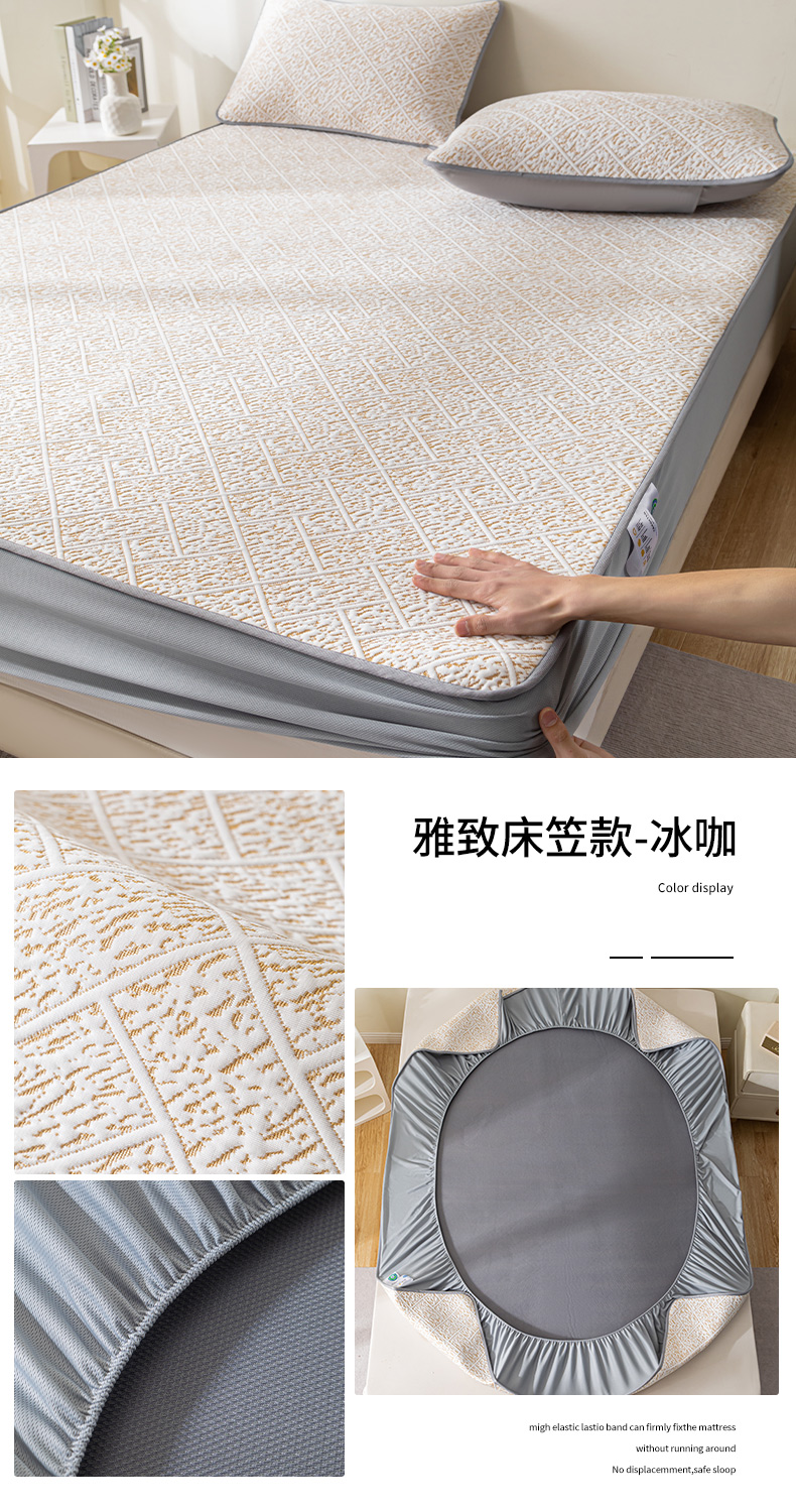商品名称:鑫姿席业 2025新款A类凉感冰豆豆席 雅致床笠款-冰咖