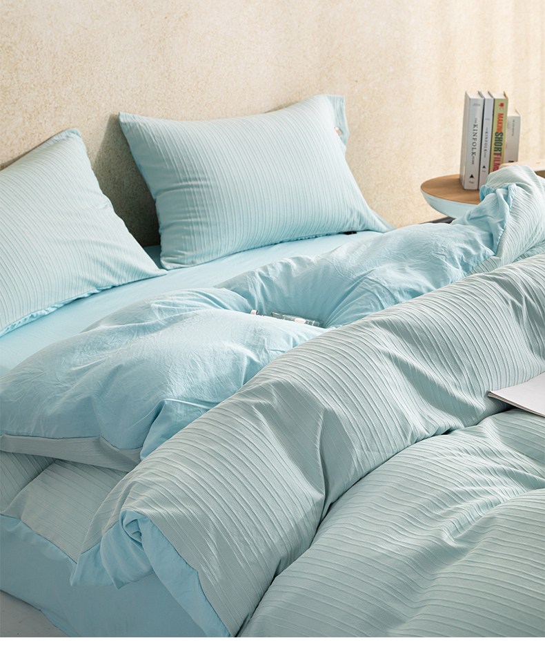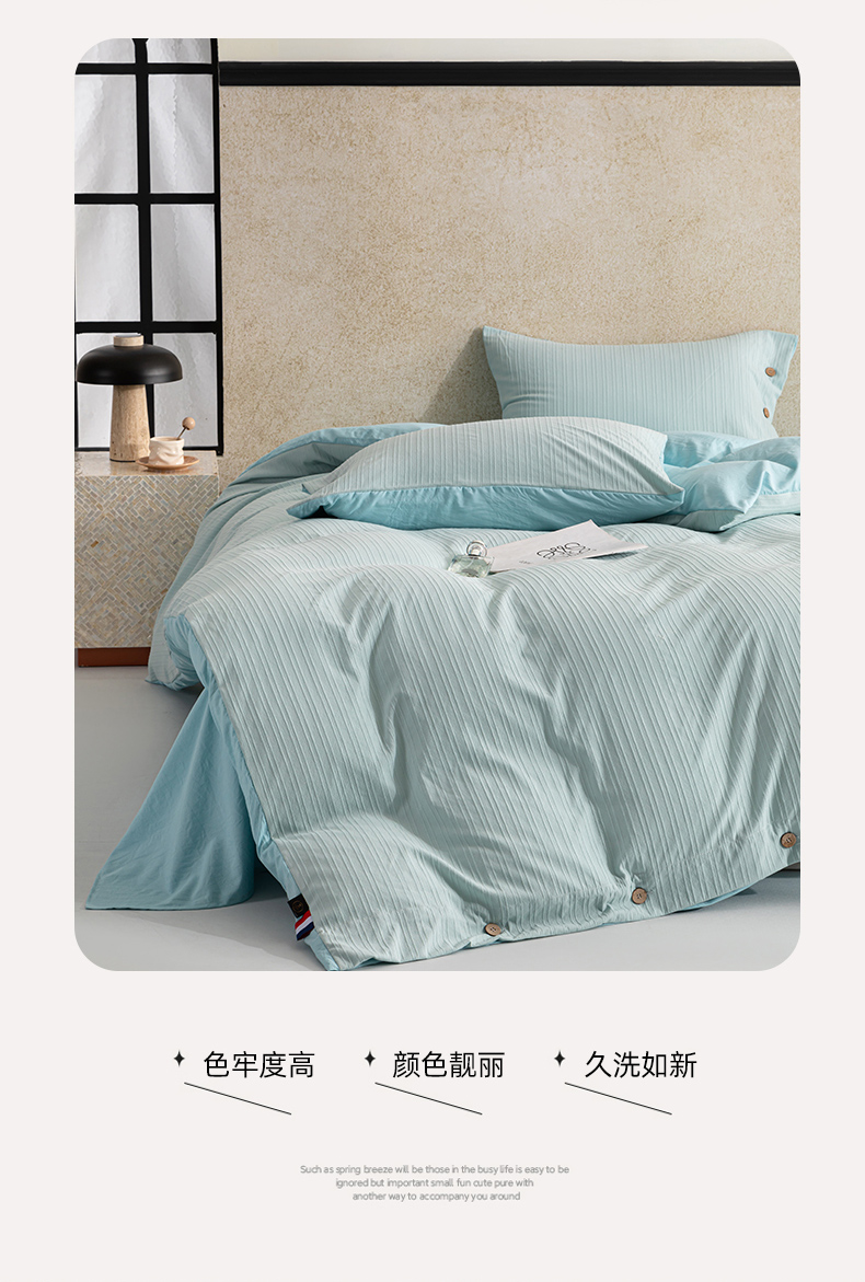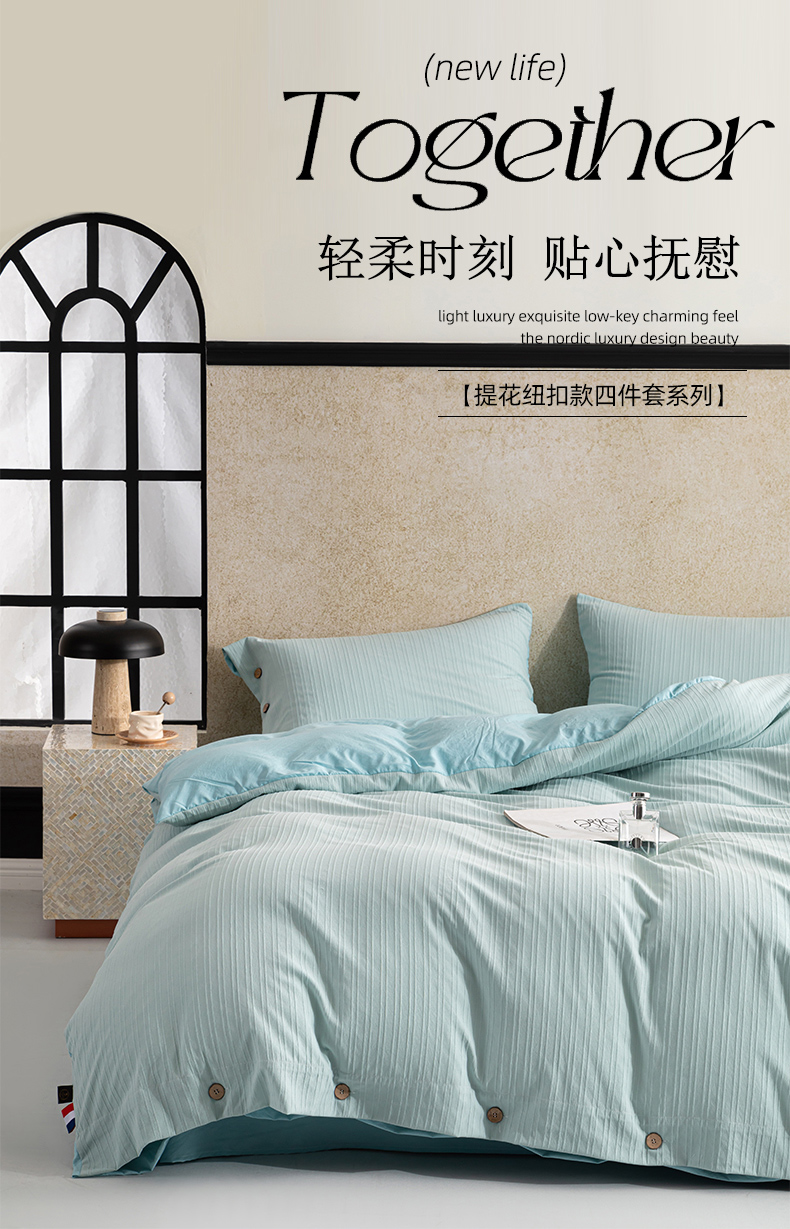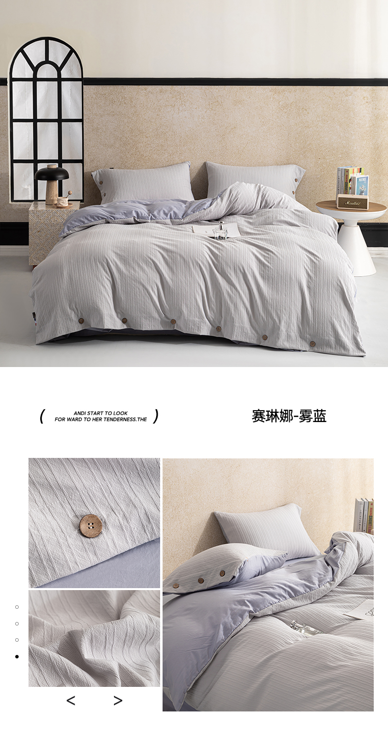 商品名称:恋之语 2025新款亲肤舒适提花纽扣款四件套 赛琳娜-雾蓝