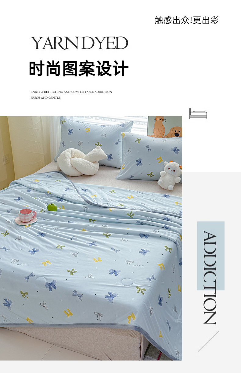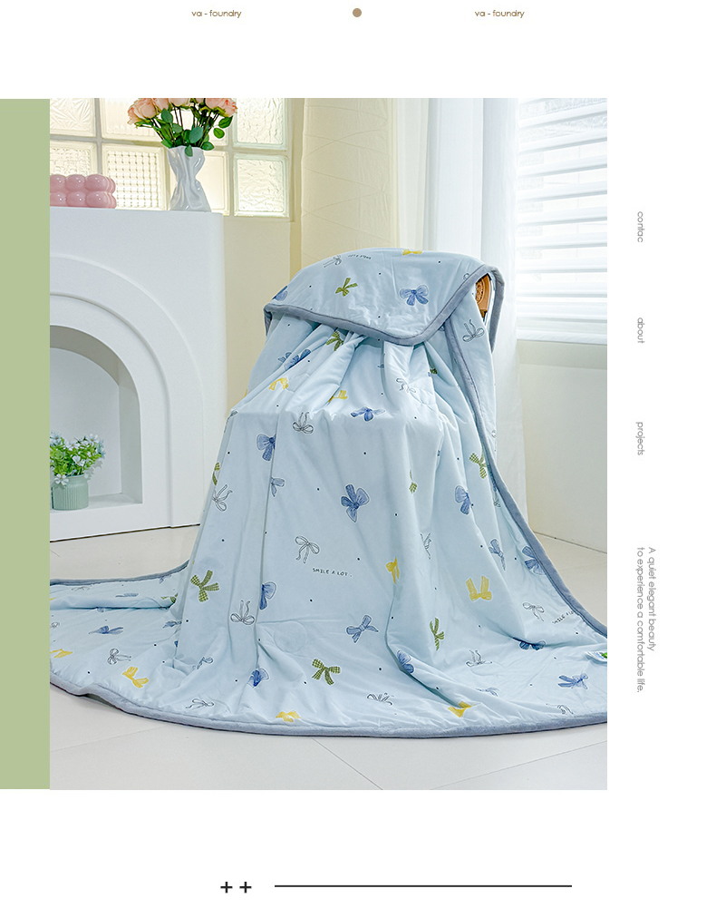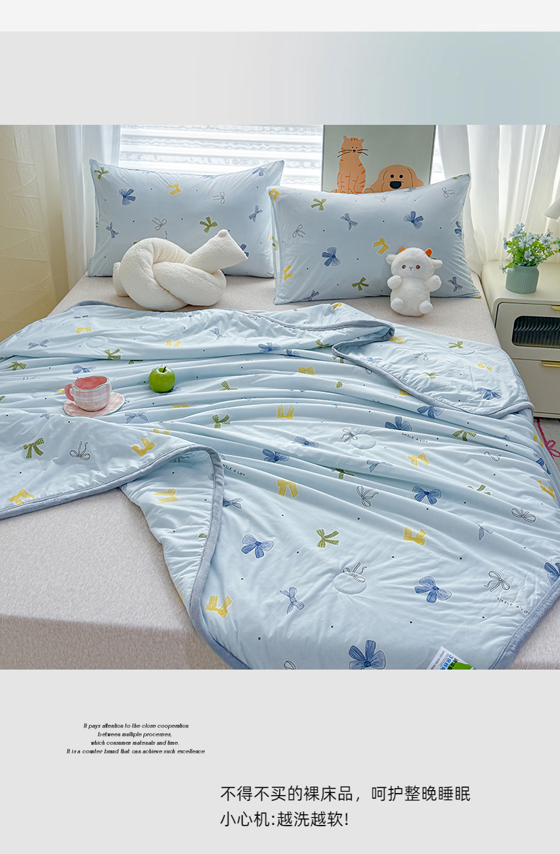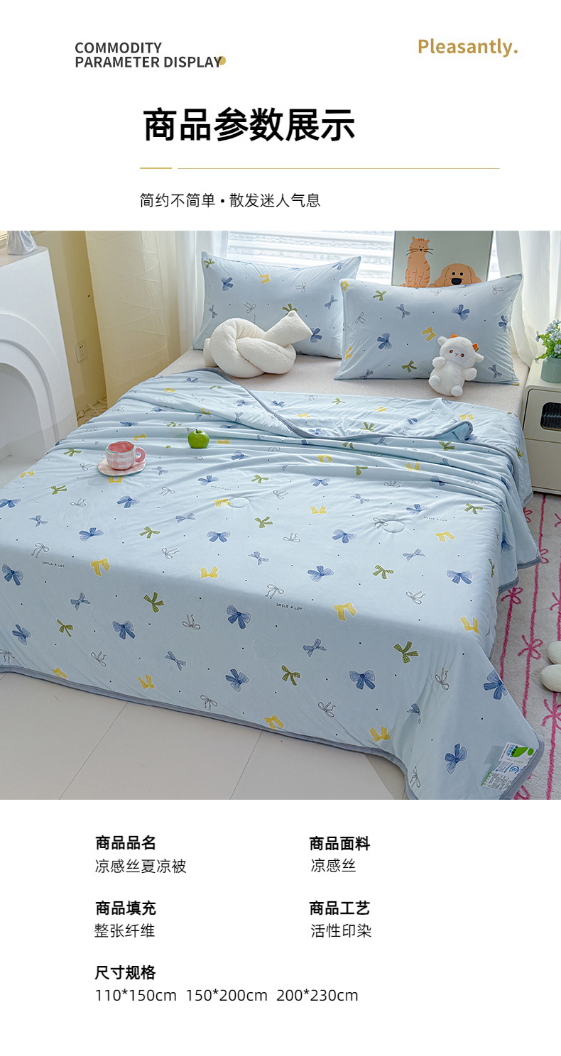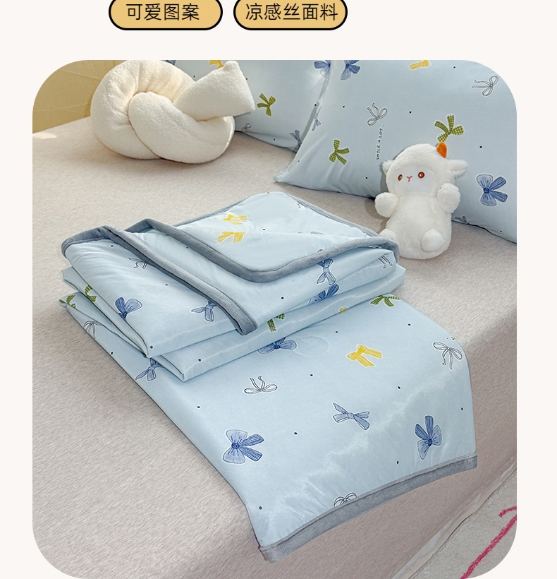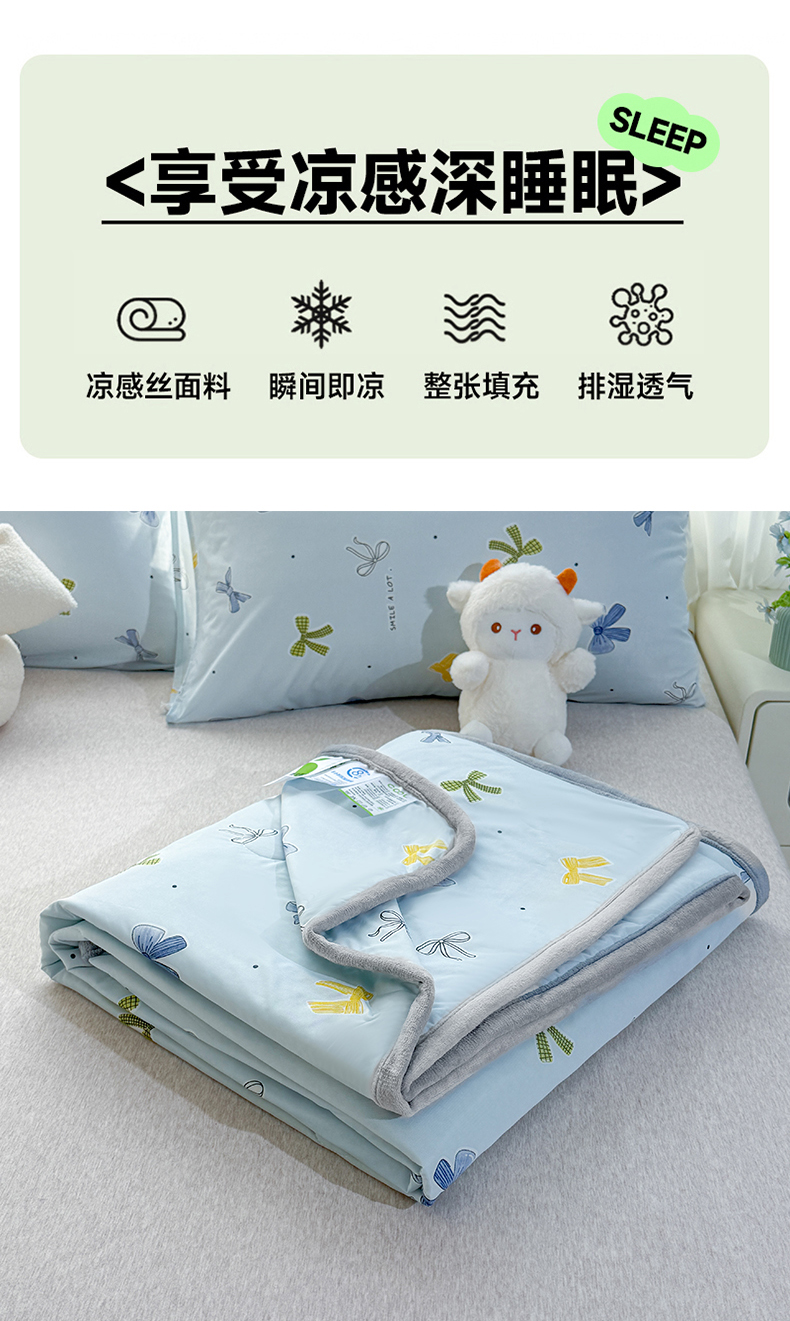 商品名称:美宜家 2025春夏新款凉感丝夏被空调被子A类小清新夏被 蝴蝶结兰