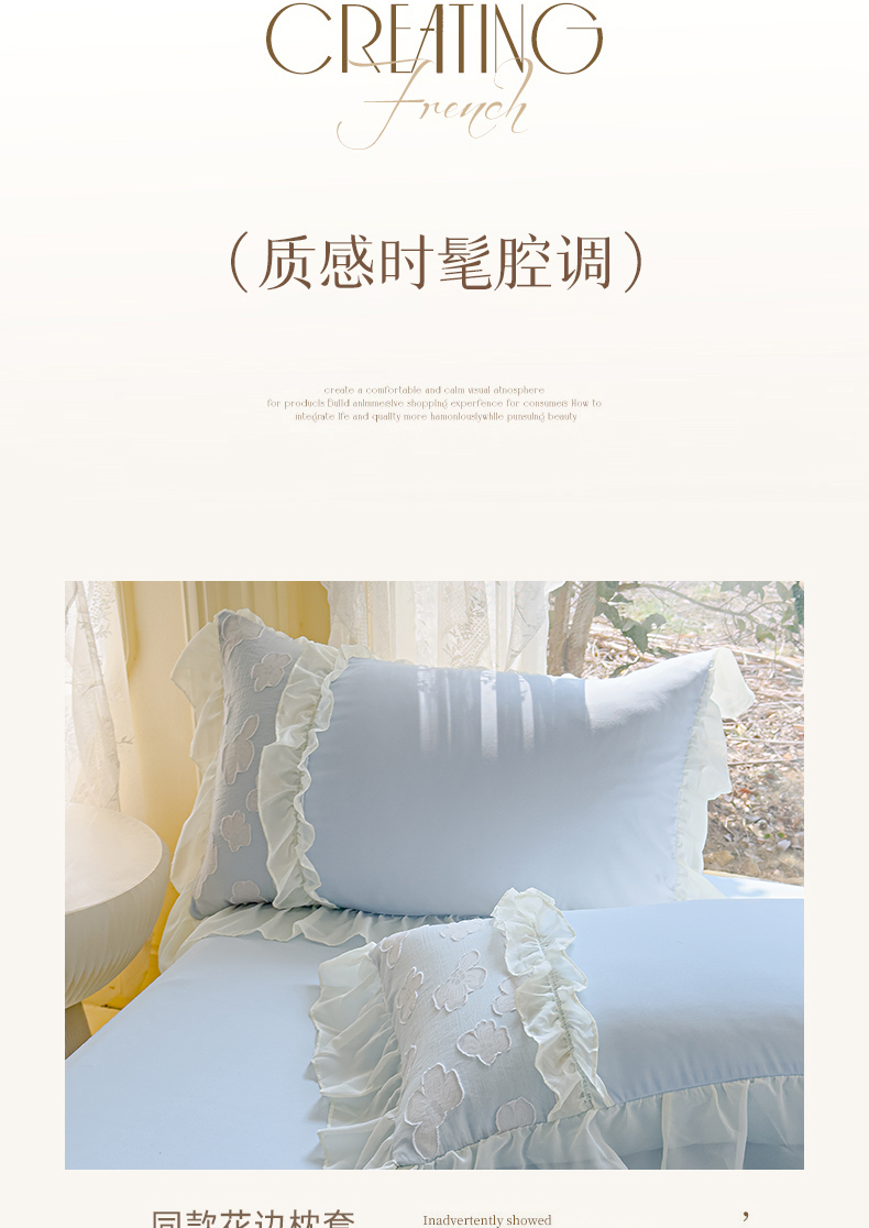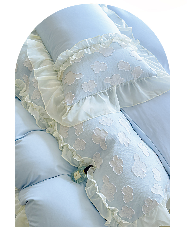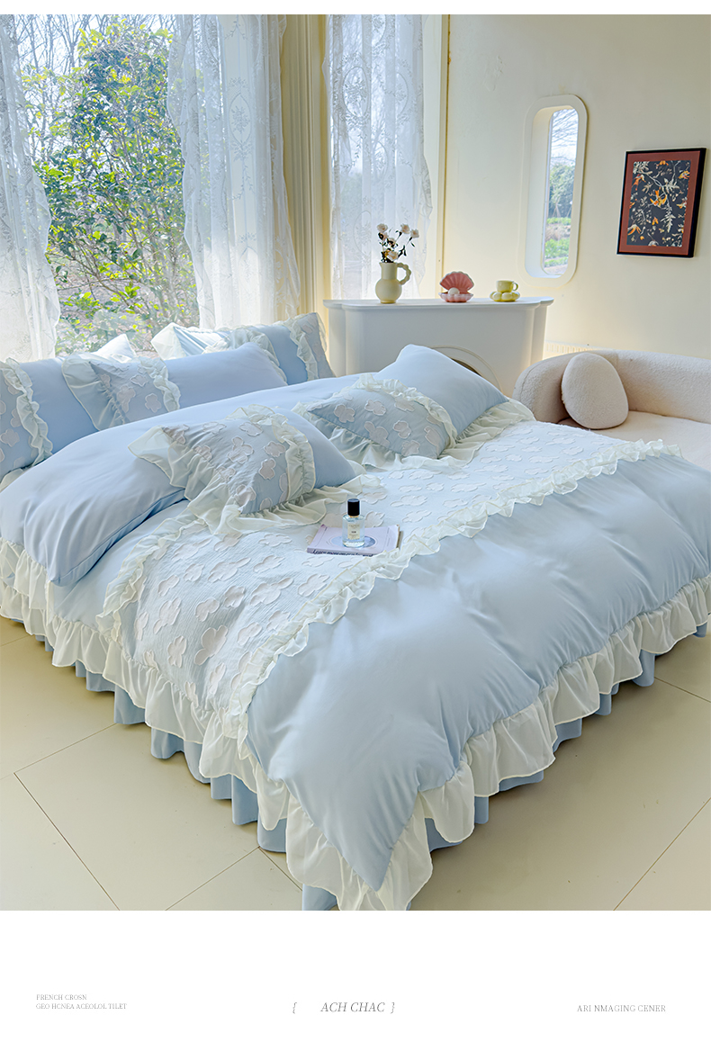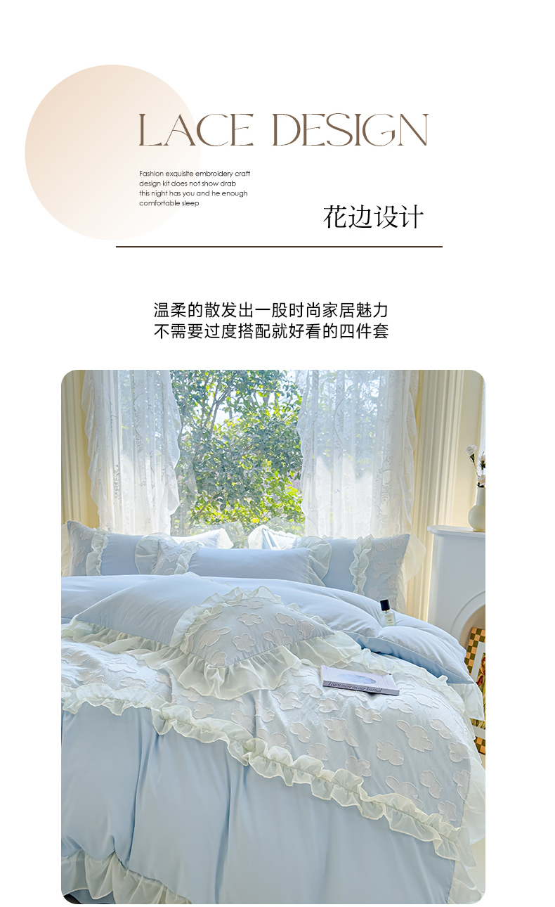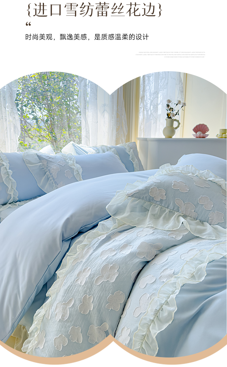 当前位置: 91家纺网 > 商品网购 > 床品套件 > 四件套 > 全棉普通四件套 > 狂想家 2025新款立体蕾丝花边梦娜系列四件套 梦娜晴空兰