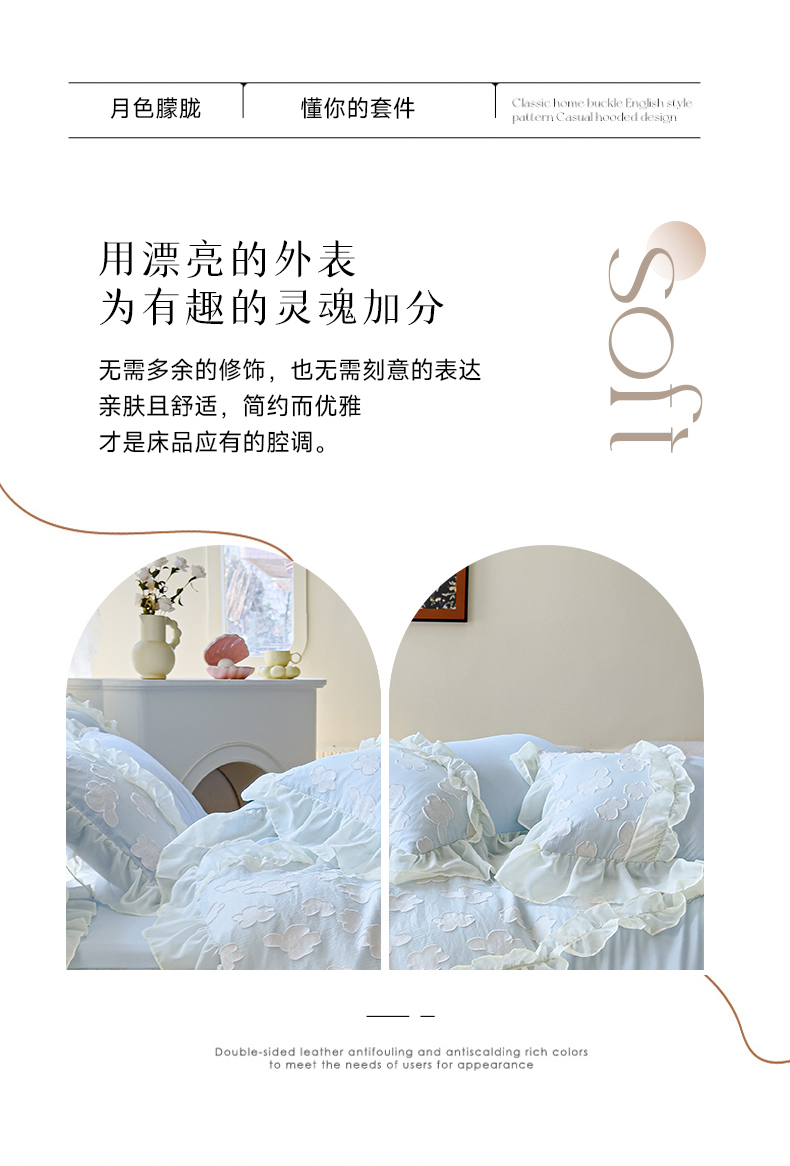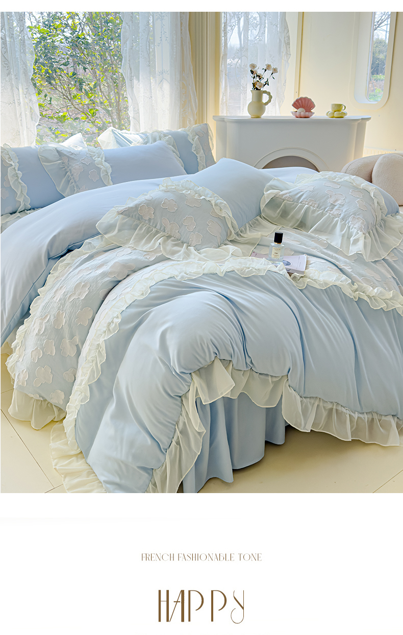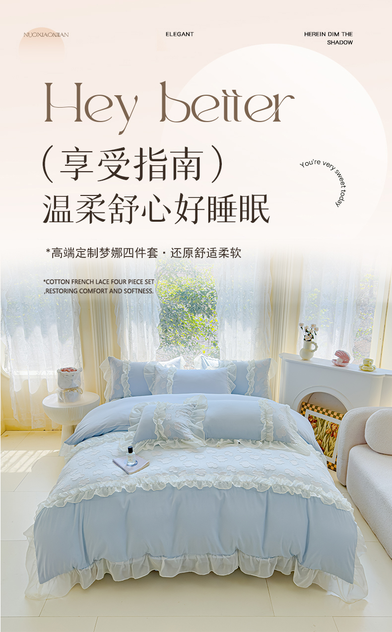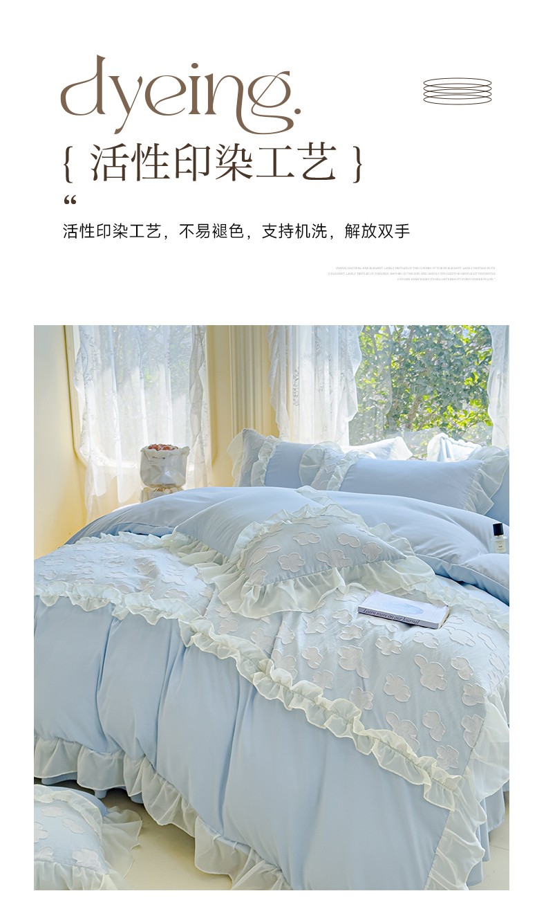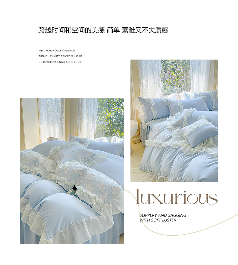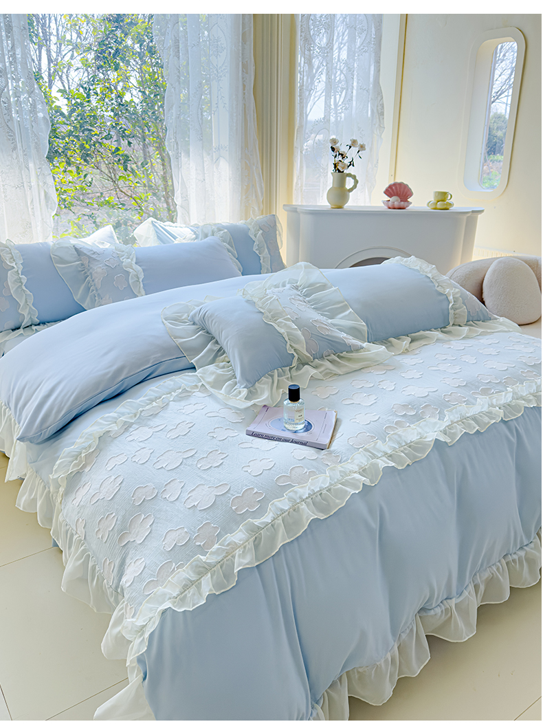 当前位置: 91家纺网 > 商品网购 > 床品套件 > 四件套 > 全棉普通四件套 > 狂想家 2025新款立体蕾丝花边梦娜系列四件套 梦娜晴空兰