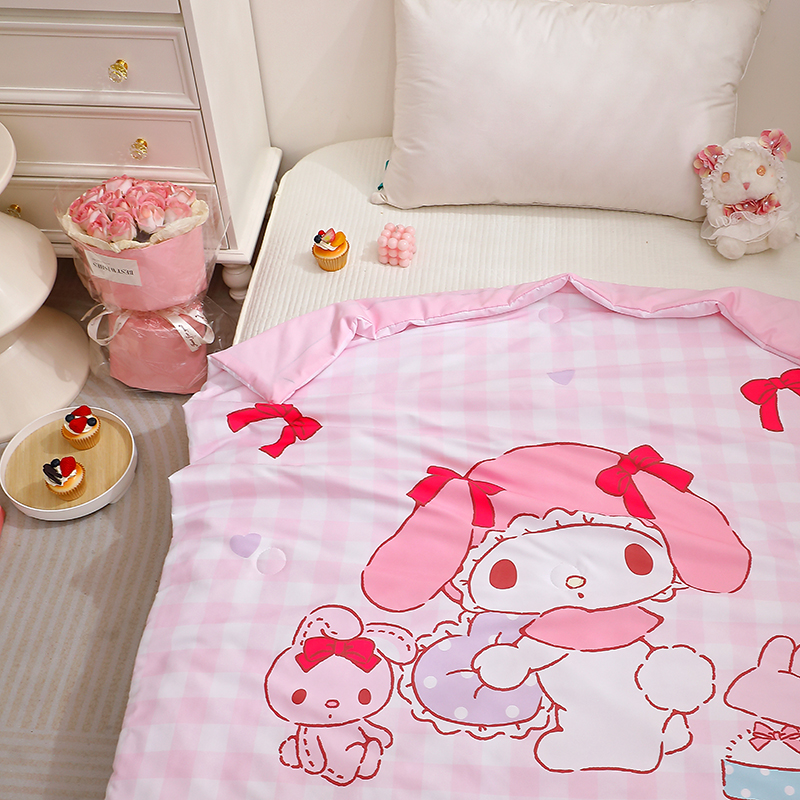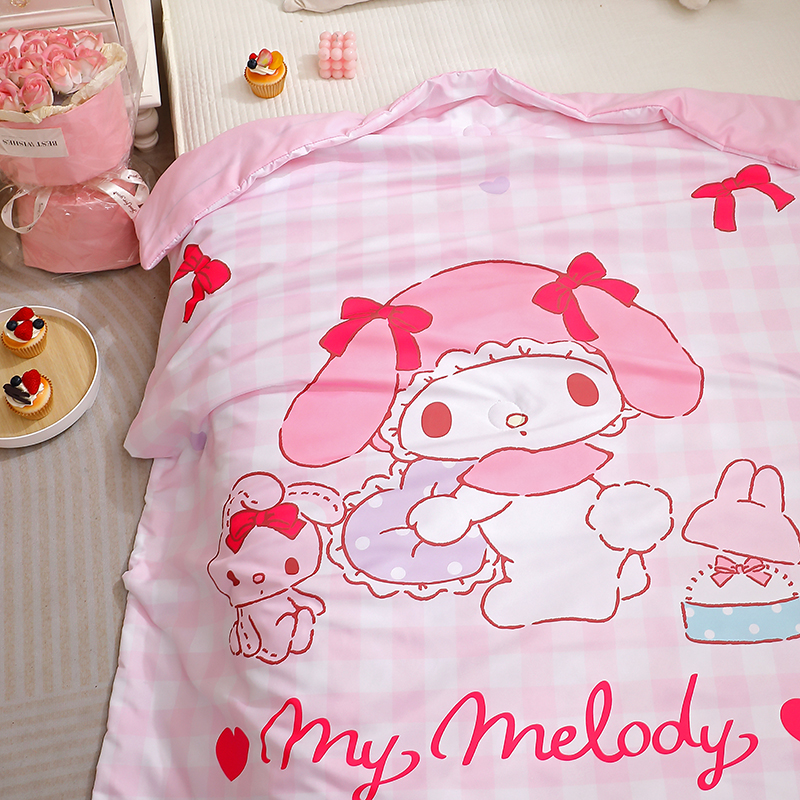 商品名称:2025新款三丽鸥正版授权库洛米儿童大版夏被夏凉被凉感天丝空调被夏凉被幼儿园午睡凉席夏被三件套 美乐蒂-格子