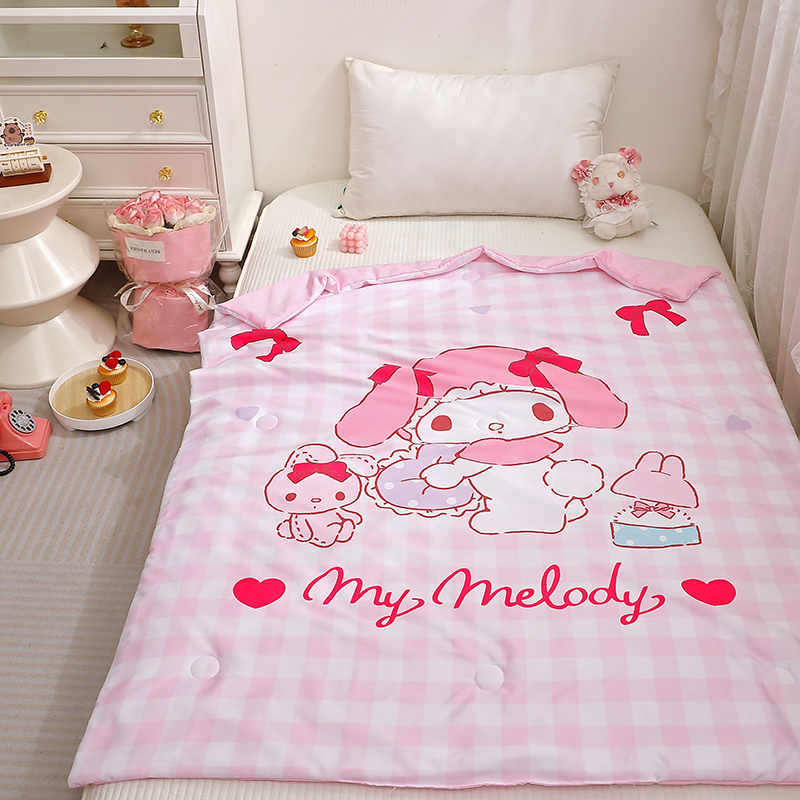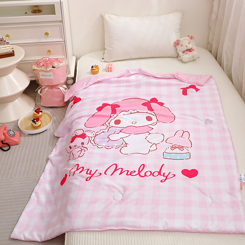 2025新款三丽鸥正版授权库洛米儿童大版夏被夏凉被凉感天丝空调被夏凉被幼儿园午睡凉席夏被三件套 美乐蒂-格子
