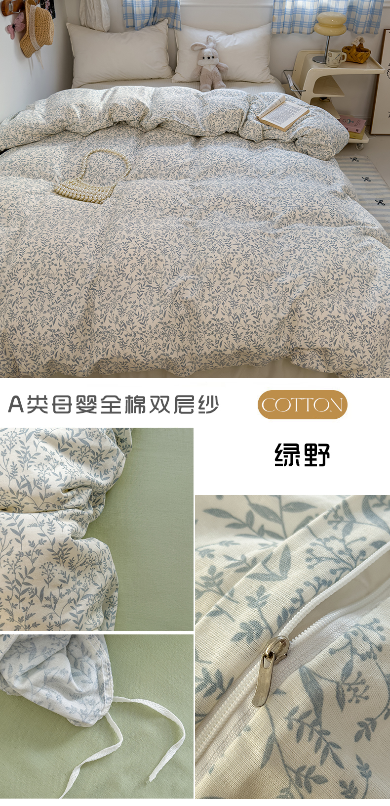 • 91家纺网 家纺一手货源 找家纺 塔塔家居  2025新款全棉纯棉双层纱被套单品单被套被套单件 绿野