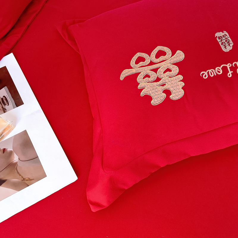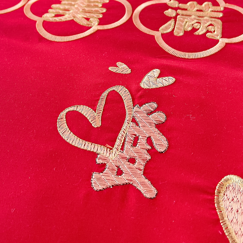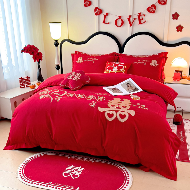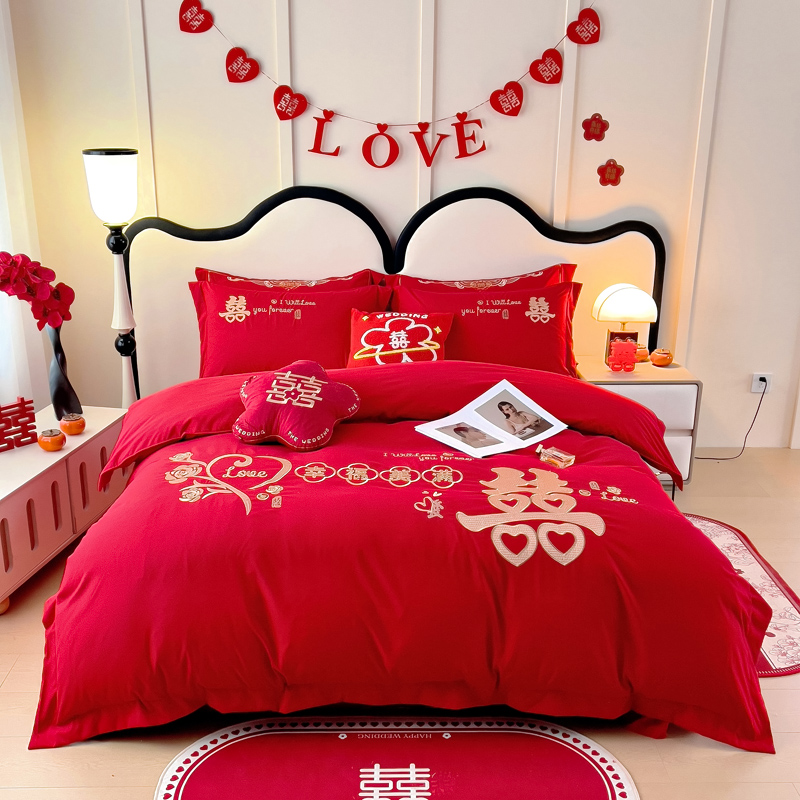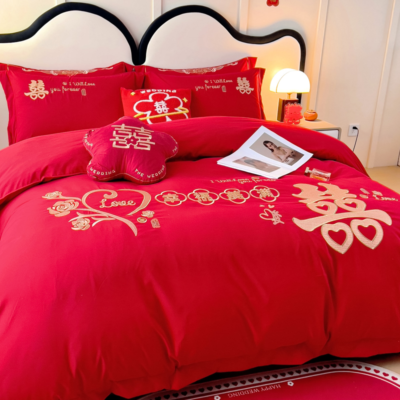 2025新款100支150克双面长绒棉婚庆绣花四件套 幸福美满