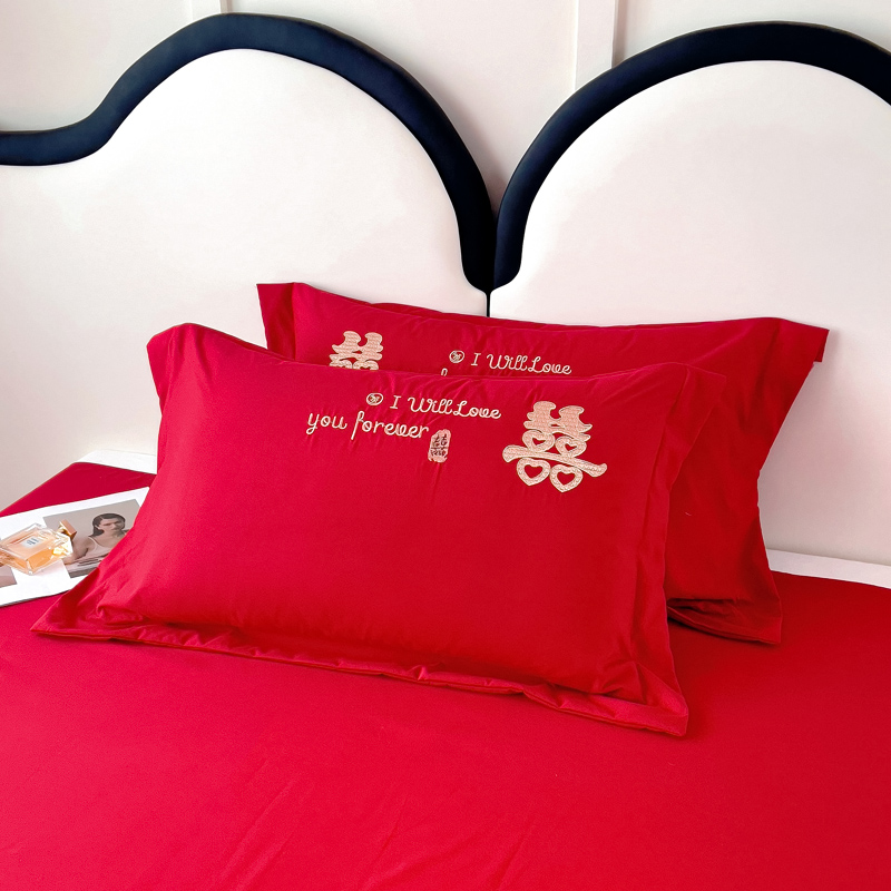 商品名称:2025新款100支150克双面长绒棉婚庆绣花四件套 幸福美满