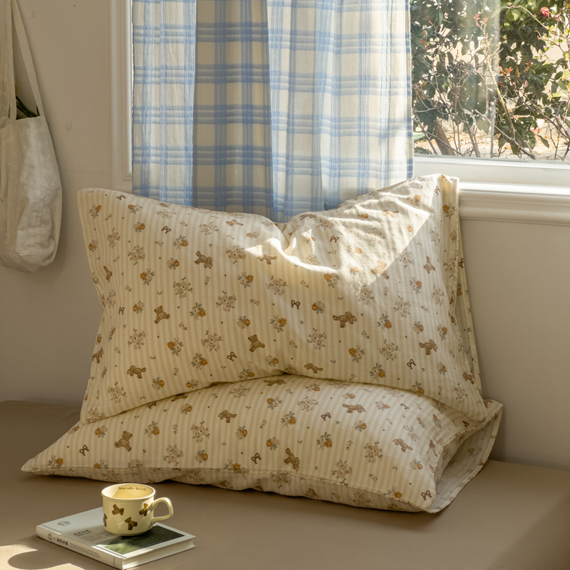 商品名称:塔塔家居 2025新款全棉纯棉双层纱枕套单品单枕套枕套单件 睡睡熊